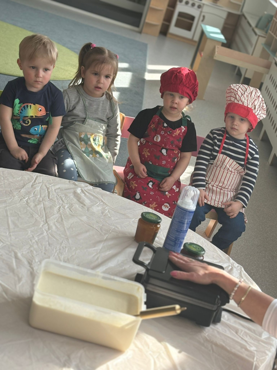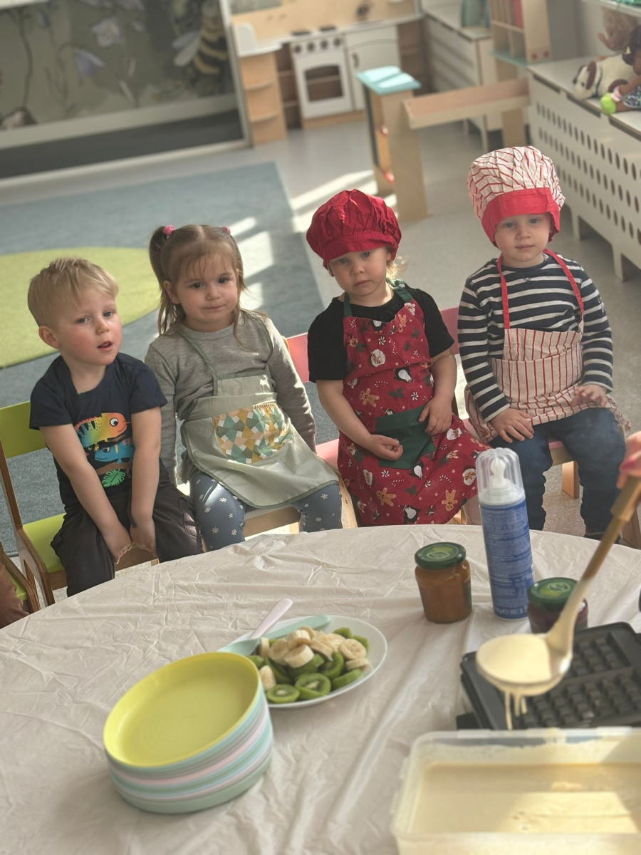 W dniu dzisiejszym Biedroneczki obchodziły Dzień Gofra. Był to wyjątkowy dzień pełen radości, słodkości i pyszności. Dzieci z ciekawością obserwowały jak się smażą gofry a potem ze smakiem je przygotowywały do zjedzenia. Smacznego Kochani.