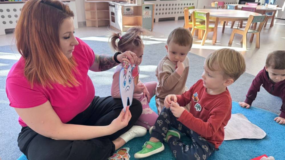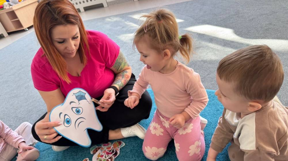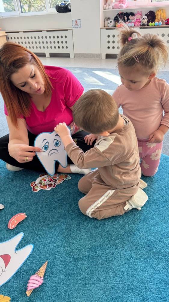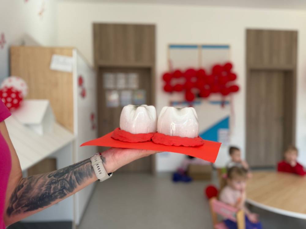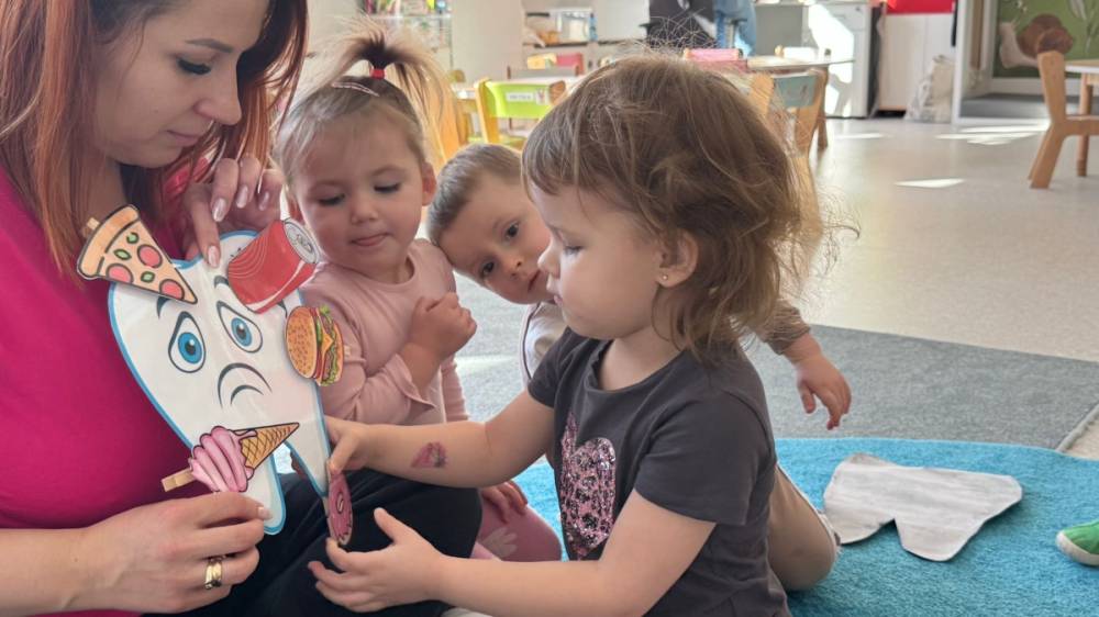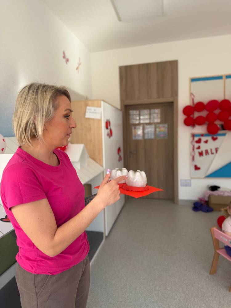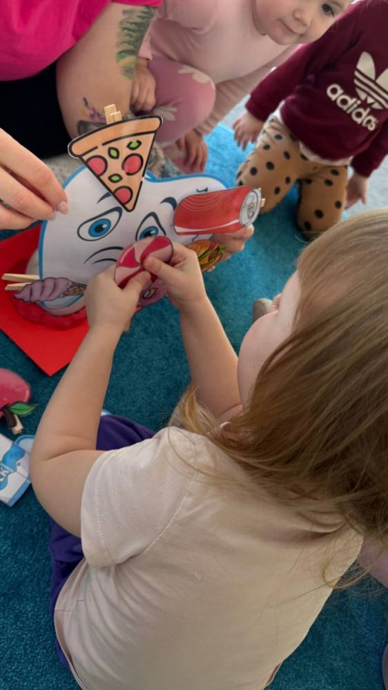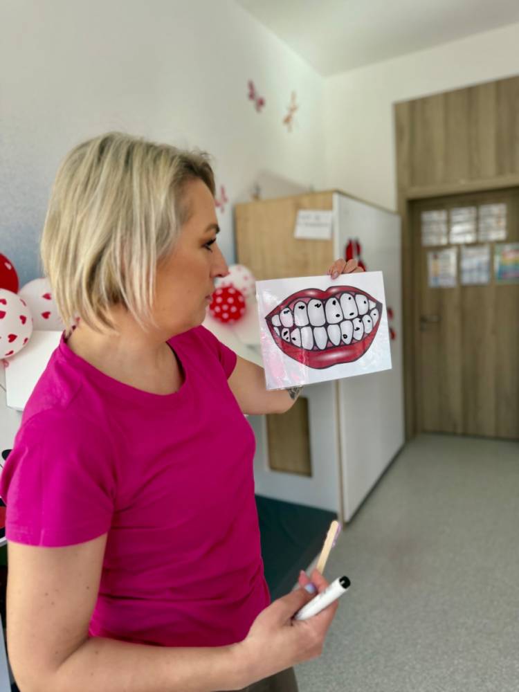 Nie zabrakło rozmów o tym, jak ważne jest dokładne szczotkowanie oraz jak wygląda leczenie ząbków w gabinecie stomatologicznym. Dzieci z dużym zainteresowaniem słuchały i dzieliły się swoimi doświadczeniami, a temat wcale nie okazał się straszny!