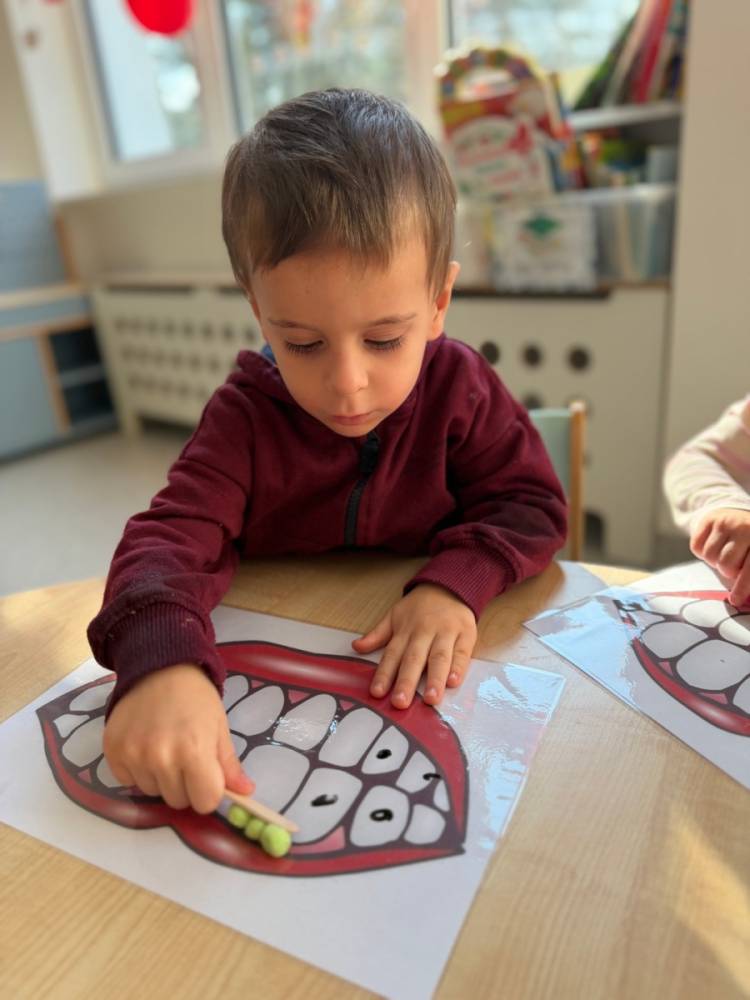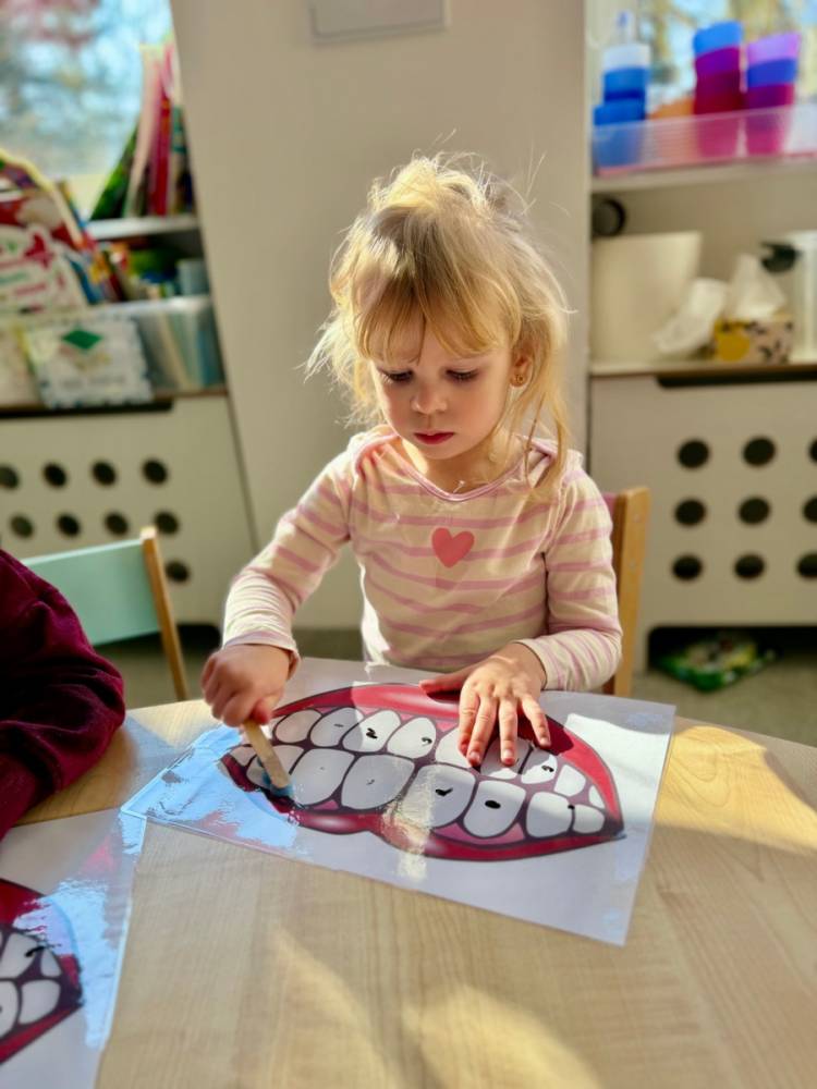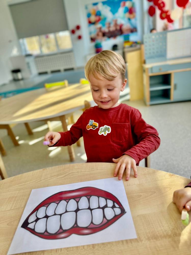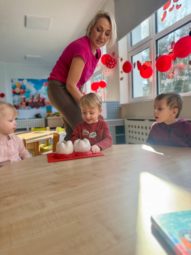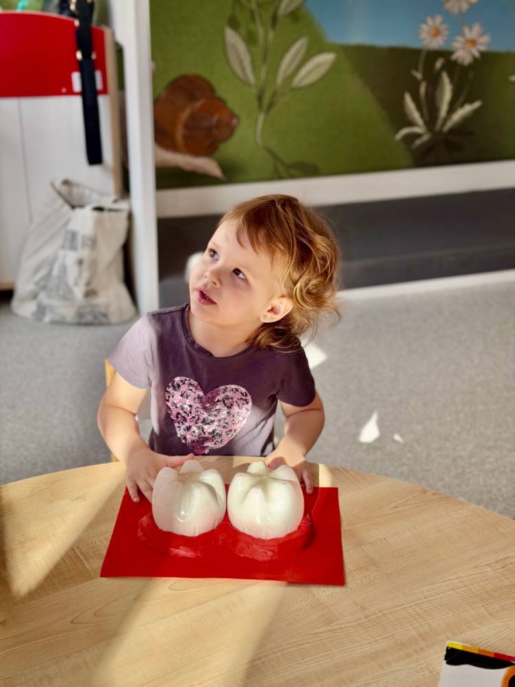 Dziś w grupie Elfy obchodziliśmy Dzień Dentysty. Podczas zajęć dzieci poznały budowę zęba – dowiedziały się, czym jest szkliwo, co kryje się w jego środku i dlaczego ząbki są takie twarde. Rozmawialiśmy także o tym, co im szkodzi, a co pomaga zachować je zdrowe i mocne.