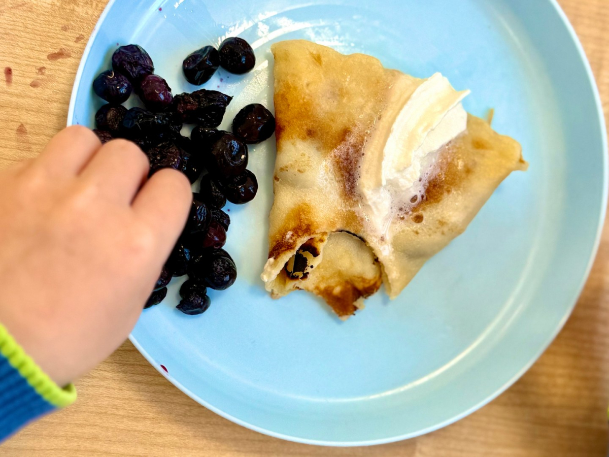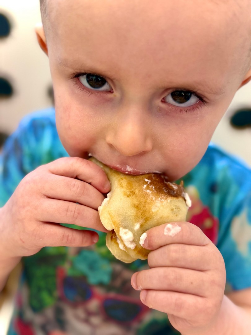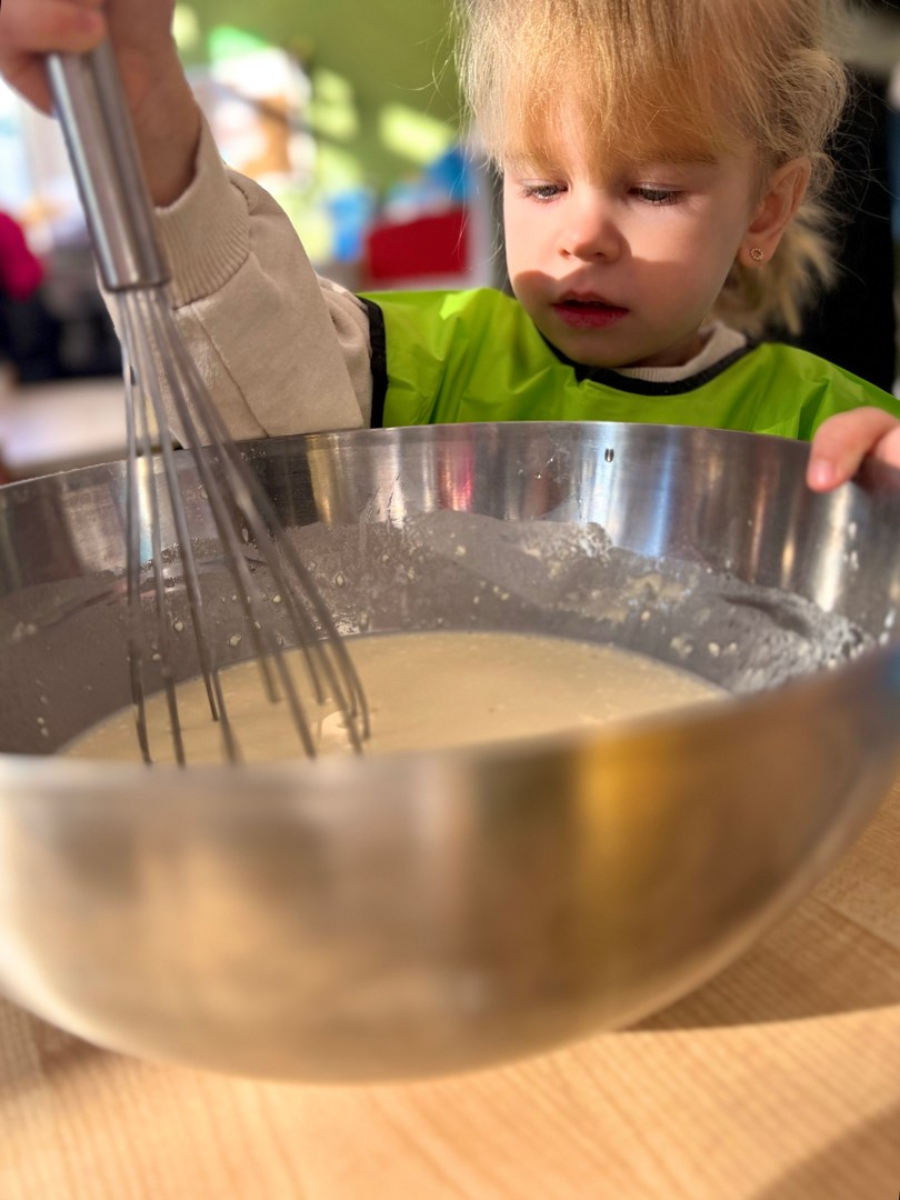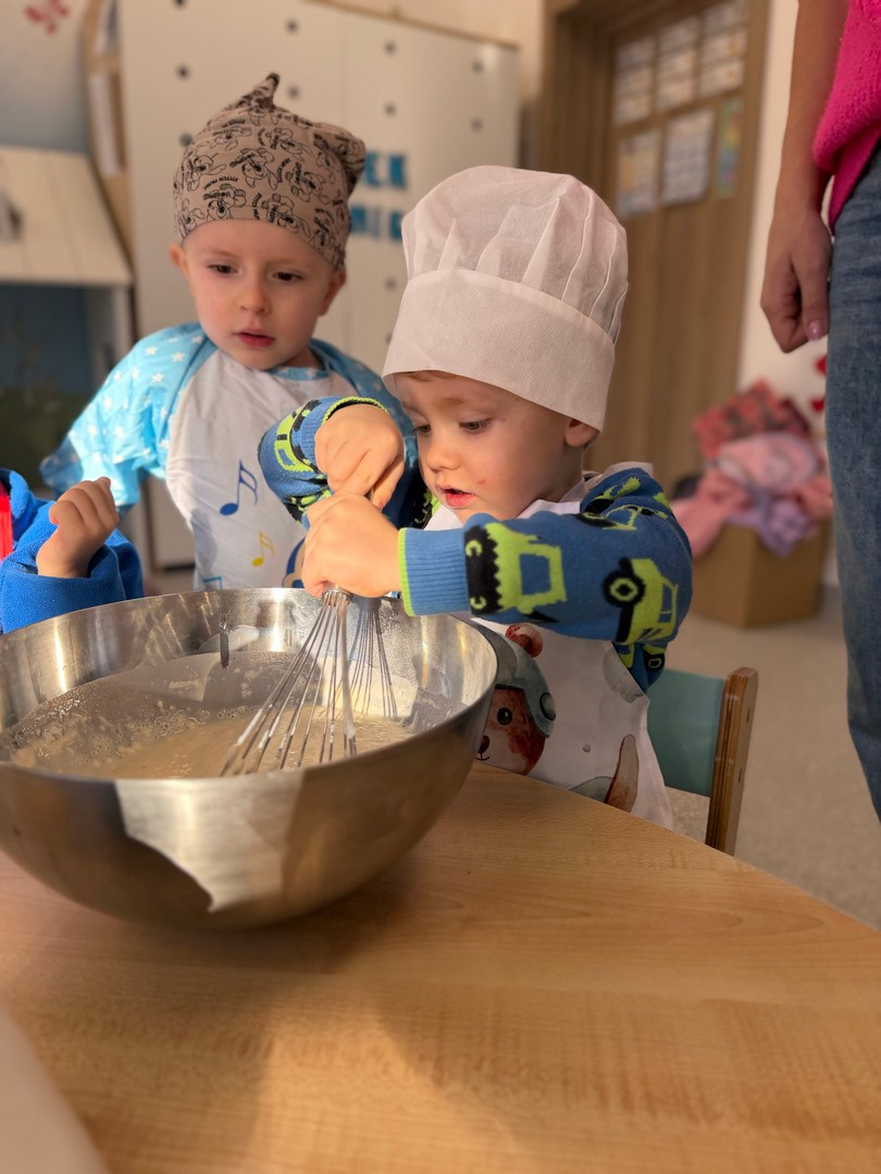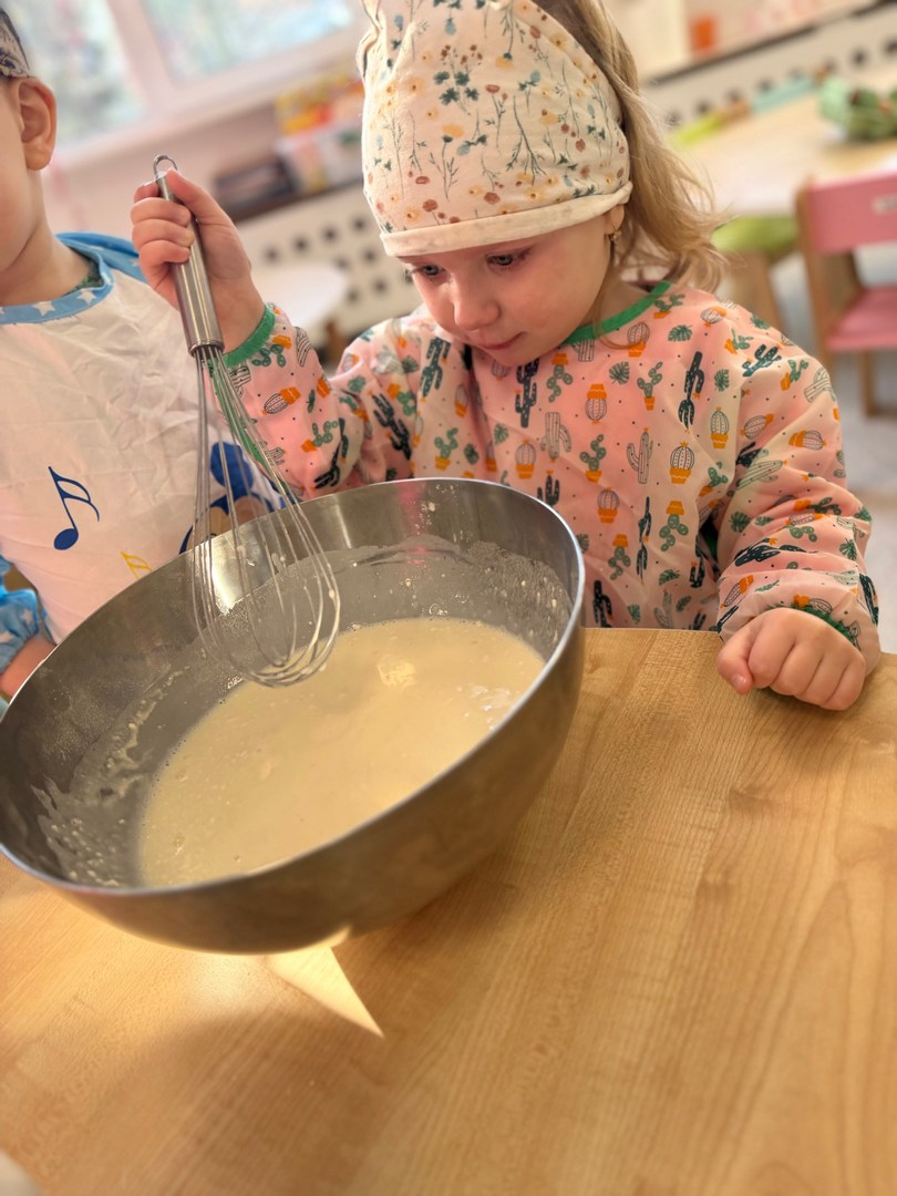 Pewnego dnia w naszym żłobku zrobiło się pachnąco, wesoło i bardzo… naleśnikowo! Dzieci świętowały Dzień Naleśnika, biorąc udział w kulinarnych warsztatach. Mali kucharze dowiedzieli się, z jakich składników powstają naleśniki oraz krok po kroku poznali sposób ich przygotowania. Następnie, wspólnie z ciociami, zabrali się do działania i własnoręcznie przygotowali to przepyszne danie. Na koniec nie mogło zabraknąć degustacji— naleśniki znikały z talerzy w mgnieniu oka!