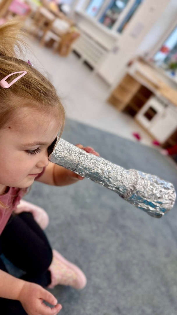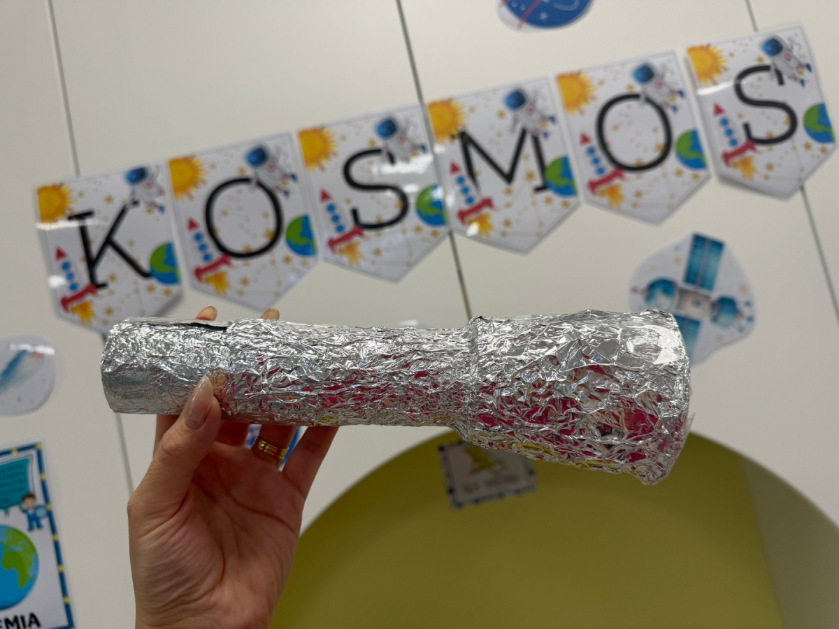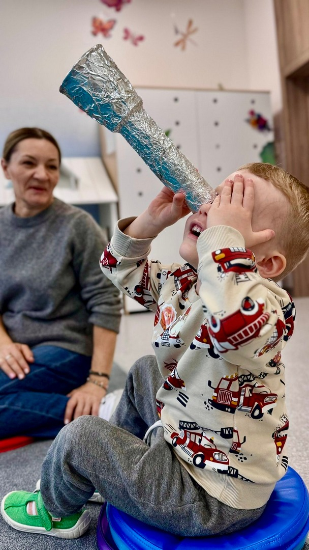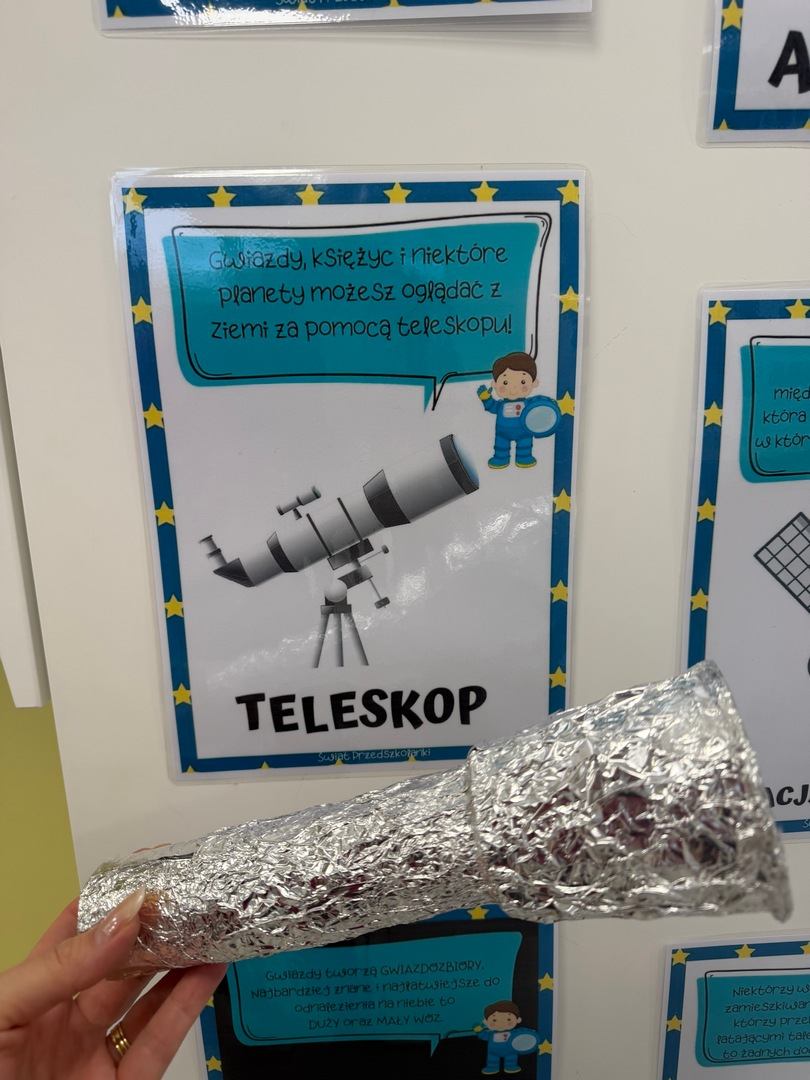 Kolejny dzień naszej kosmicznej przygody w grupie Elfy za nami! Dziś mali odkrywcy mieli okazję zajrzeć w tajemniczy świat gwiazd przez nasz żłobkowy teleskop – było mnóstwo zachwytów i radosnych okrzyków!