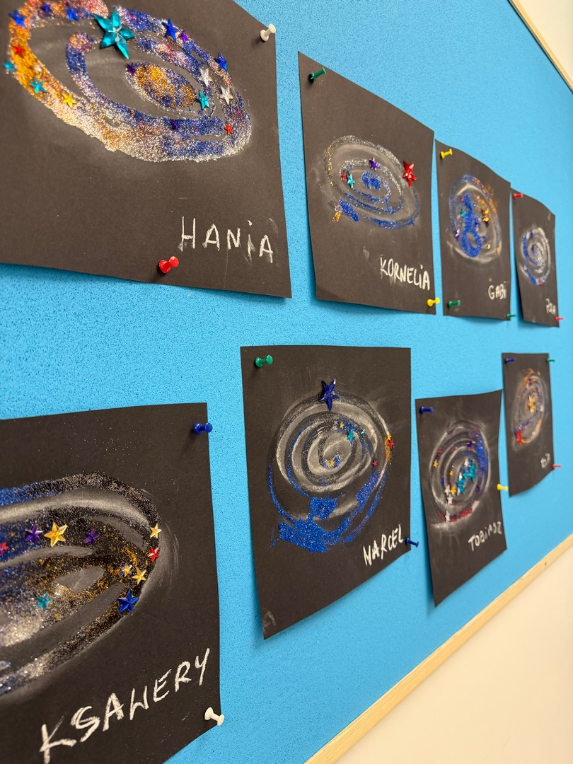 Każde dziecko stworzyło swoją własną Drogę Mleczną – pełną błyszczących gwiazd i kosmicznych inspiracji. Powstały prawdziwe małe dzieła sztuki!