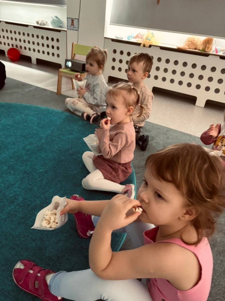 W trakcie seansu filmowego dzieci obejrzały historię Karolka i dowiedziały się, dlaczego nie warto używać brzydkich słów oraz jak można je zastąpić miłymi, kulturalnymi zwrotami.
