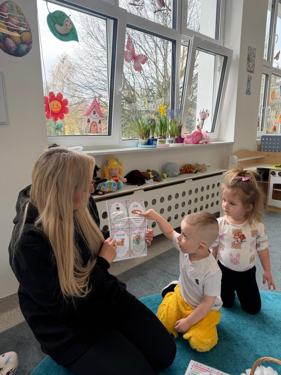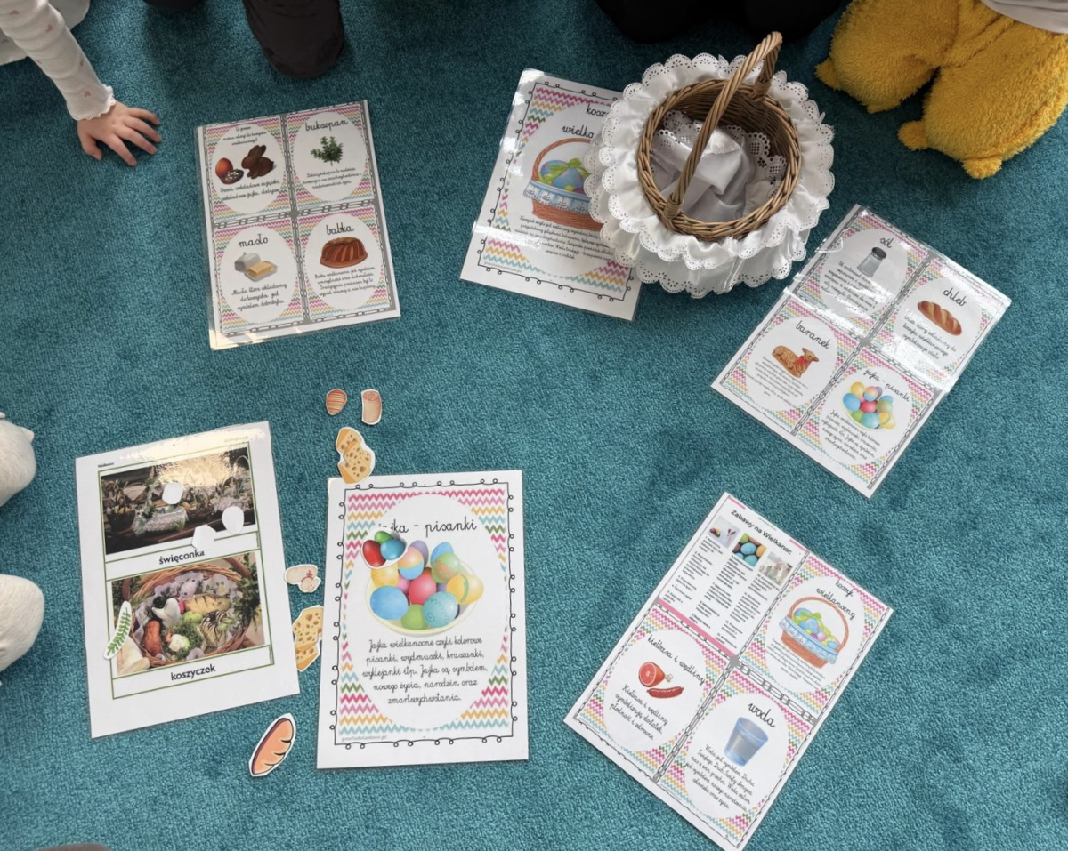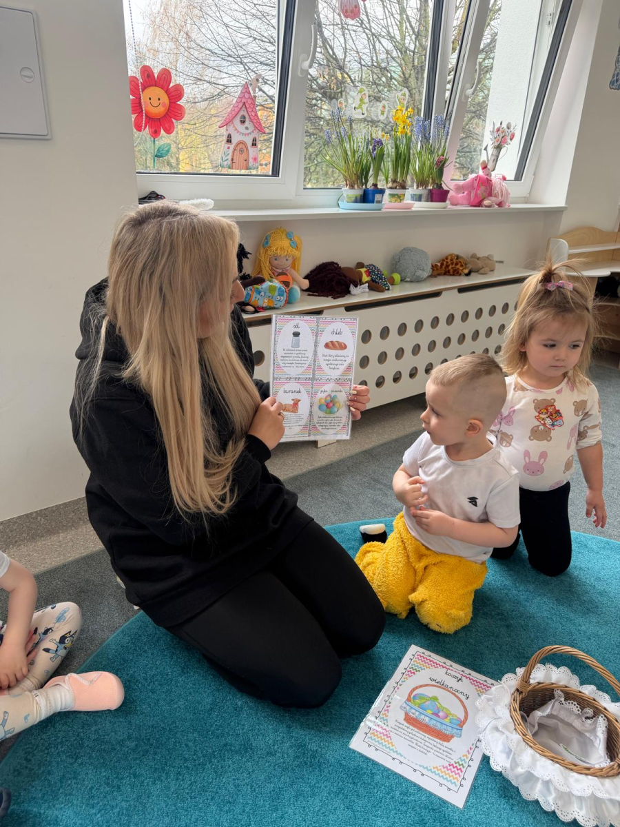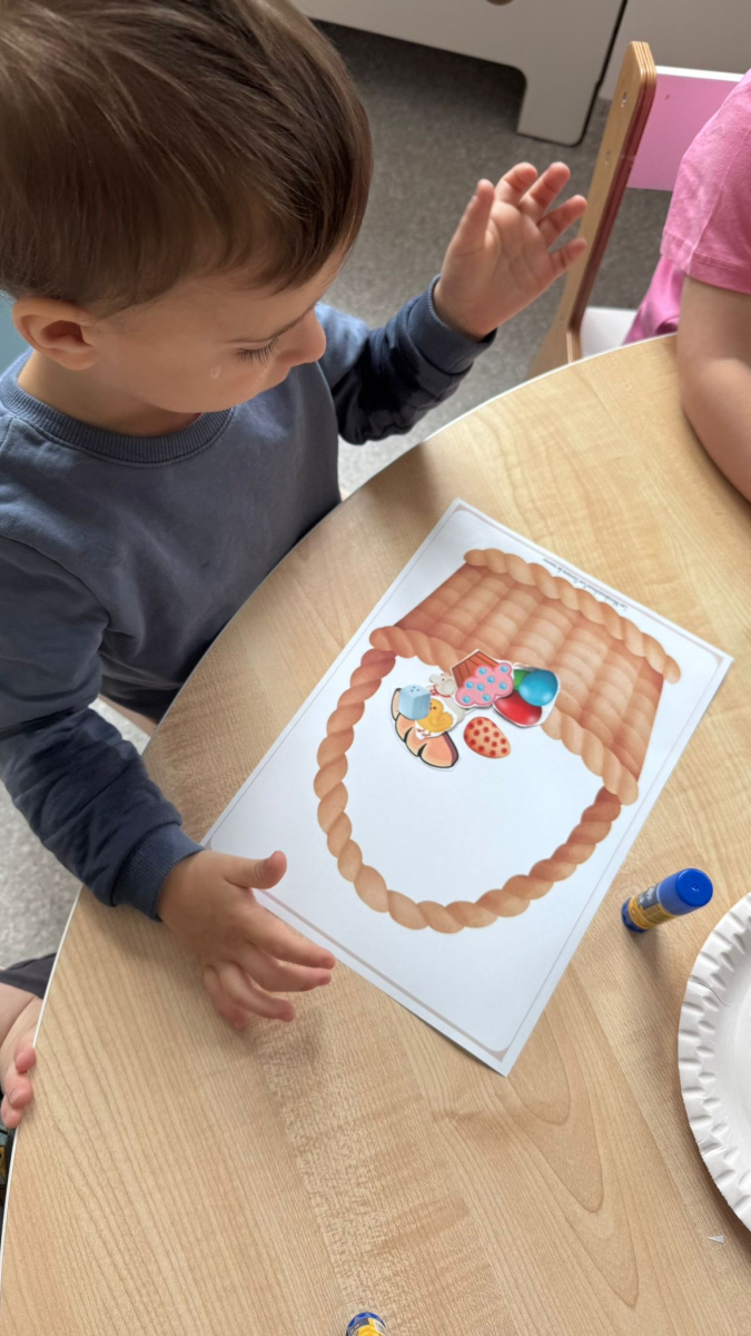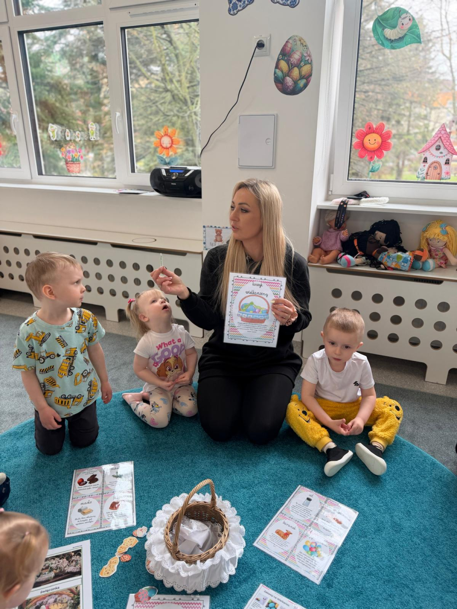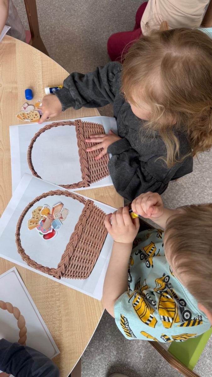 Elfy z radością rozmawiały o zbliżających się Świętach Wielkanocnych. Dowiedziały się, co symbolizują pokarmy, które wkładamy do wielkanocnego koszyczka. Następnie z dużym zaangażowaniem przygotowały na kartkach swoje własne, kolorowe koszyczki. To był bardzo ciepły i radosny dzień, pełen rozmów o tradycjach i świątecznej atmosferze.