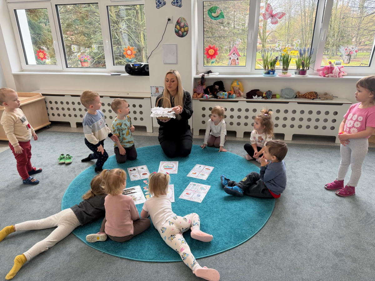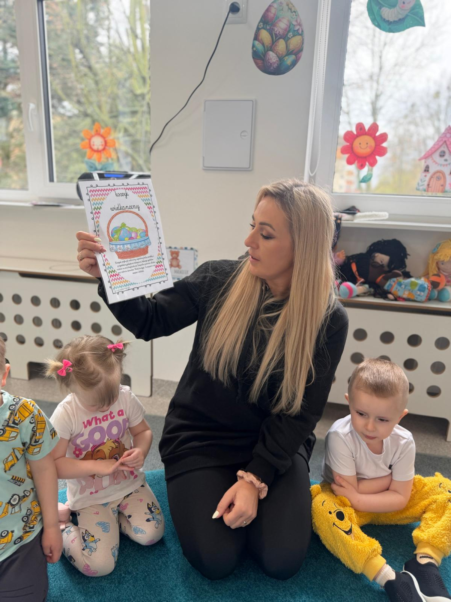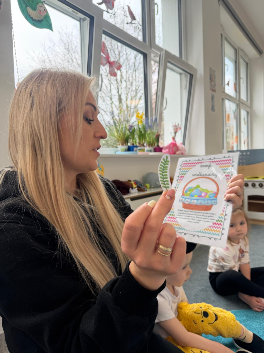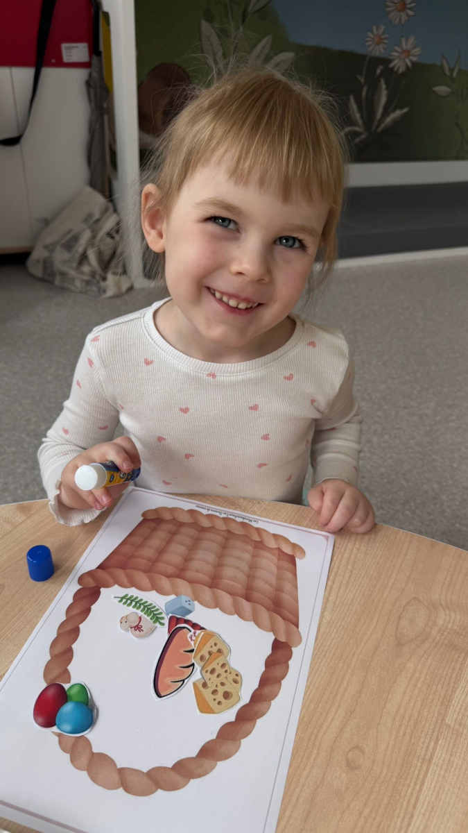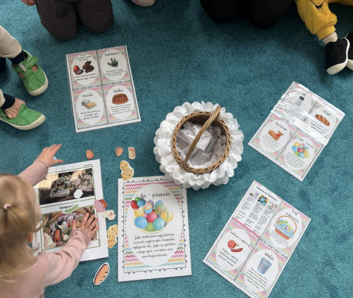 Elfy z radością rozmawiały o zbliżających się Świętach Wielkanocnych. Dowiedziały się, co symbolizują pokarmy, które wkładamy do wielkanocnego koszyczka. Następnie z dużym zaangażowaniem przygotowały na kartkach swoje własne, kolorowe koszyczki. To był bardzo ciepły i radosny dzień, pełen rozmów o tradycjach i świątecznej atmosferze.