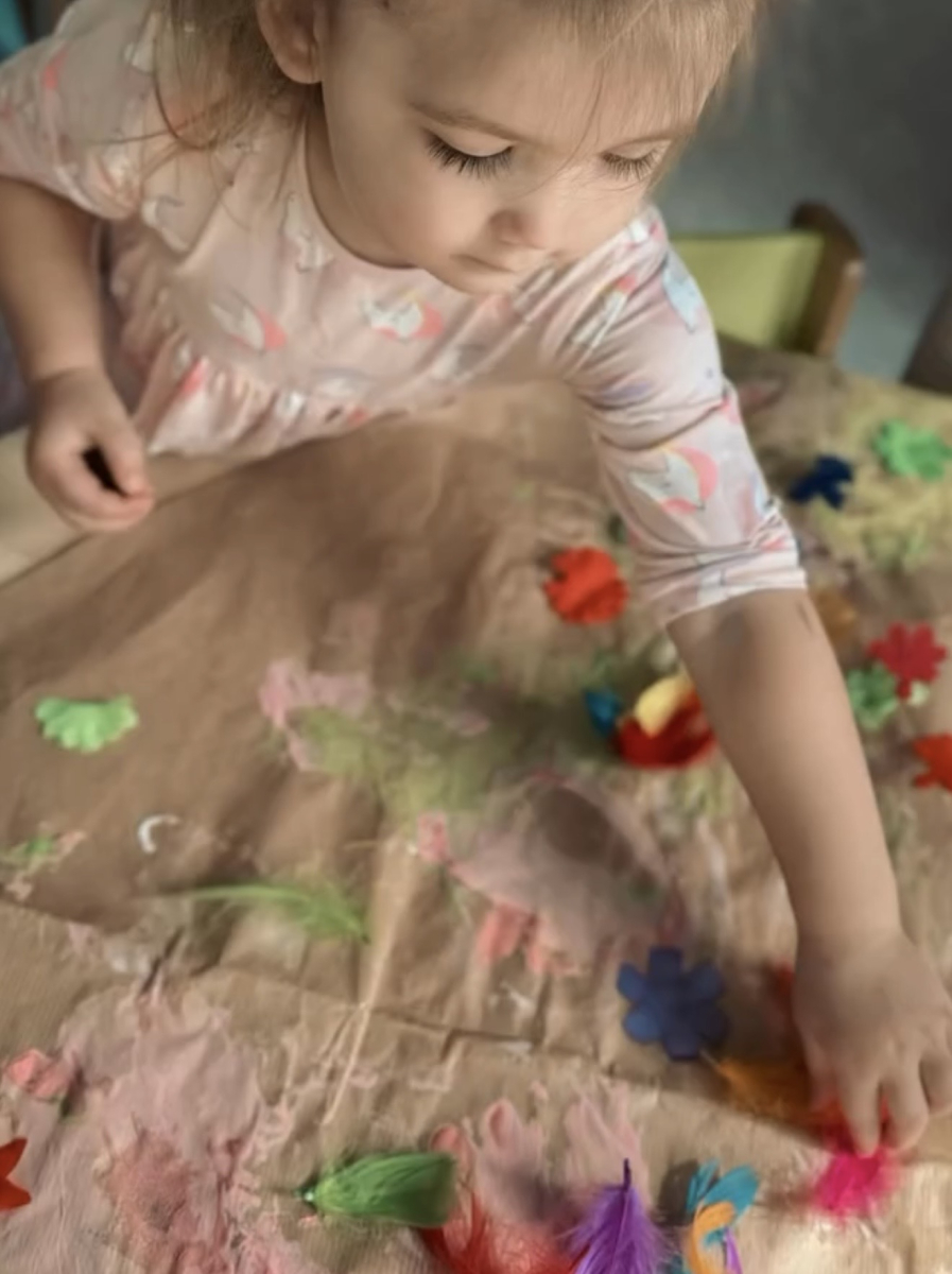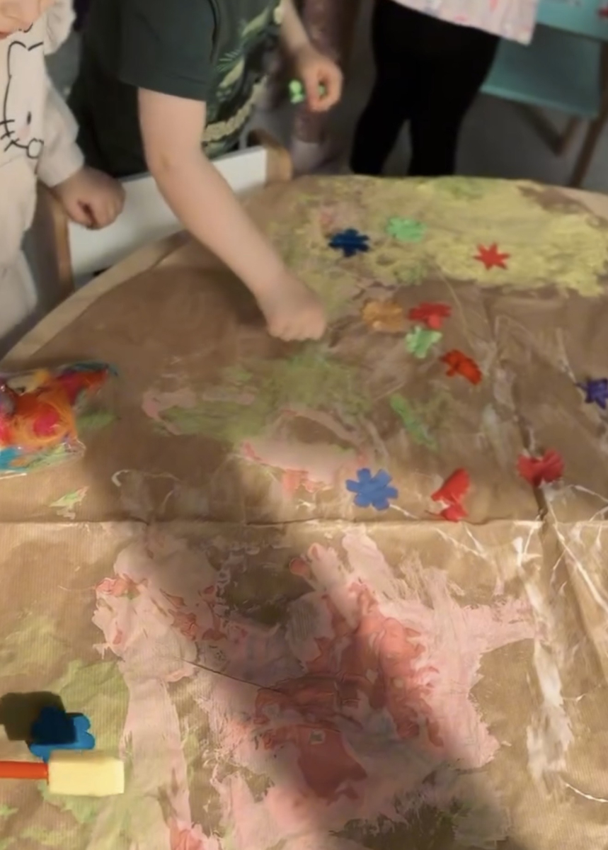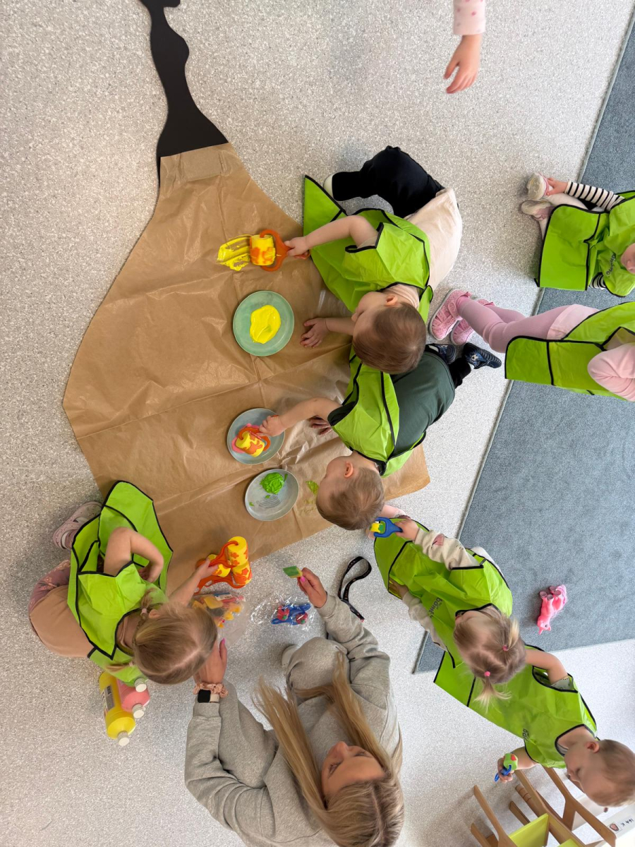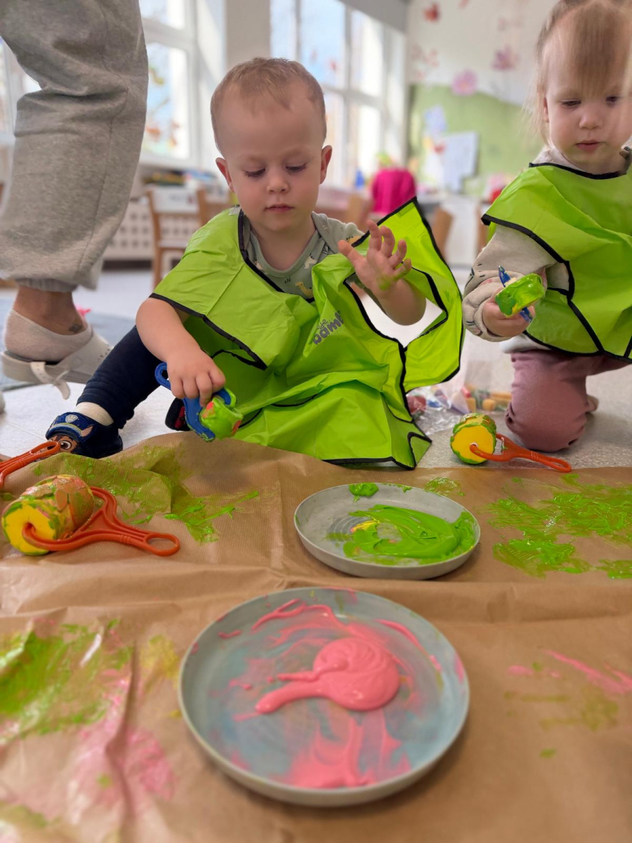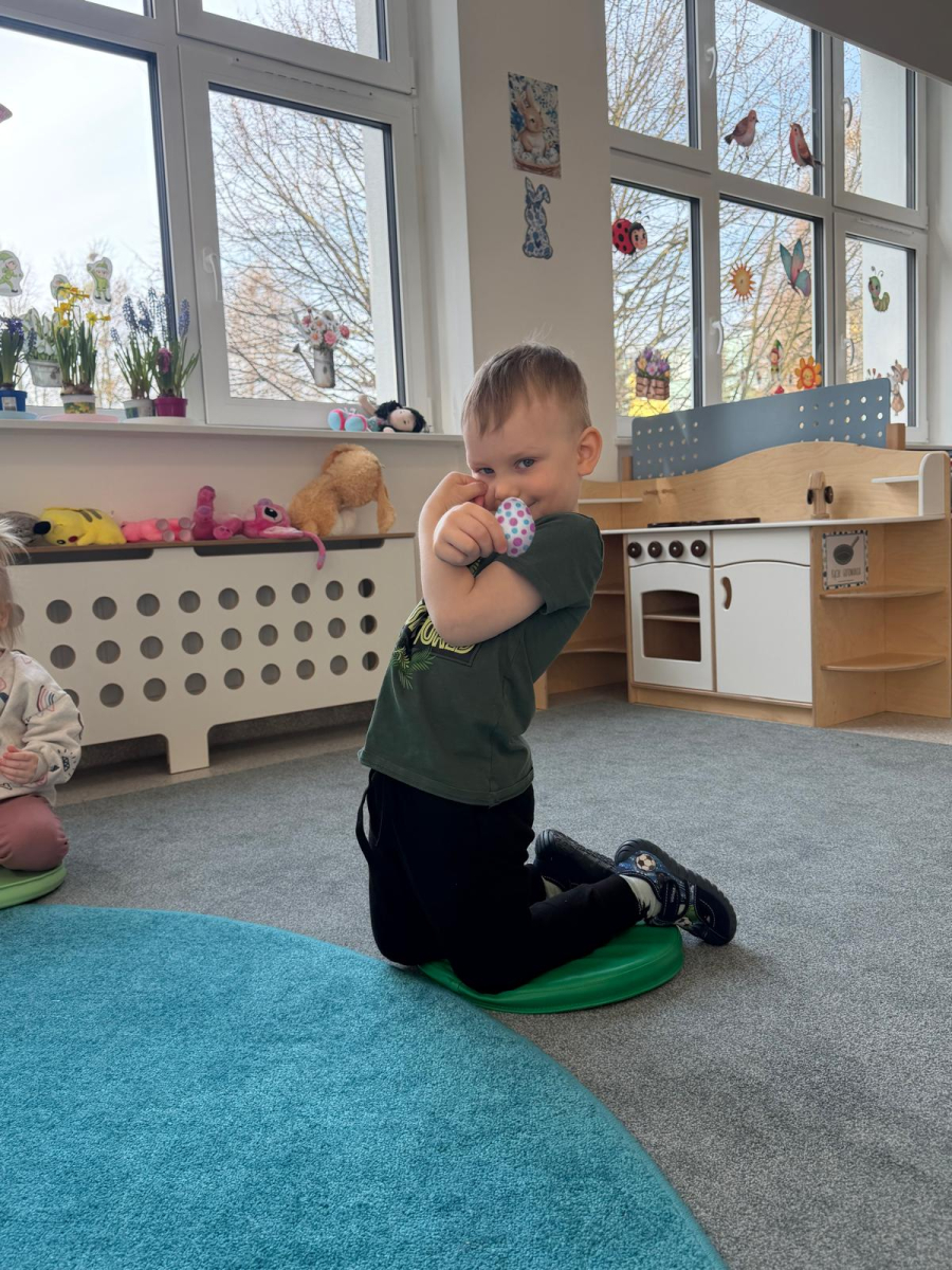 Dzień w grupie Elfy upłynął w wyjątkowo radosnej, wiosenno-świątecznej atmosferze. Nasze małe Elfy z ogromnym zaangażowaniem uczyły się piosenki o pisankach, przygotowując się do zbliżających się Świąt Wielkanocnych. Było też dużo ruchu i wspólnego muzykowania. Następnie dzieci wcieliły się w małych artystów i stworzyły własną „Panią Wiosnę”. Malowały ją wałeczkami oraz stemplowały gąbeczkami, rozwijając przy tym swoją kreatywność i sprawność manualną. Gdy farba wyschła, przyszedł czas na dekorowanie – pojawiły się kolorowe kwiatuszki i mięciutkie piórka, które dodały pracy wyjątkowego uroku. To był dzień pełen twórczej ekspresji, radości i pierwszych wielkanocnych inspiracji.