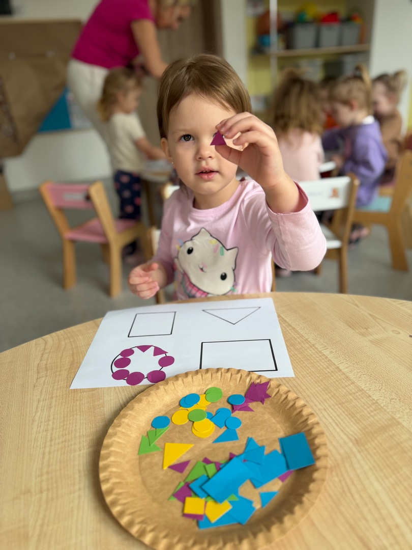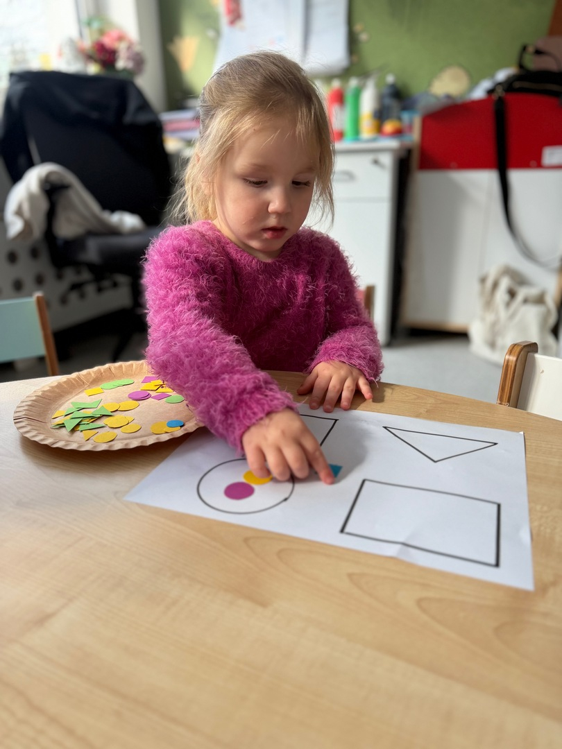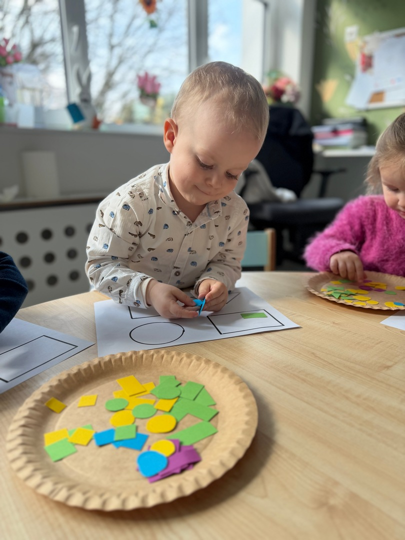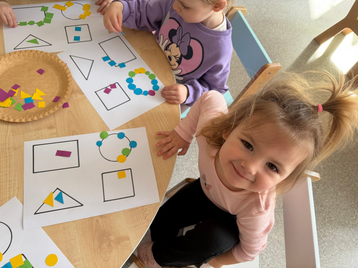 Dzieci z grupy Elfy dziś poznawały kształty oraz próbowały dopasować je do odpowiednich figur geometrycznych. To zadanie wymagało skupienia, uważności i cierpliwości — i z radością możemy powiedzieć, że poradziły sobie z nim naprawdę dzielnie! Każde dziecko pracowało we własnym tempie, a my z dumą obserwowałyśmy , jak rozwijają swoje umiejętności poprzez zabawę. Pojawiało się dużo radości, ciekawości i wzajemnego wspierania się. Zachęcamy, aby w domu również bawić się w rozpoznawanie kształtów — można je odnajdywać w codziennych przedmiotach, co dodatkowo wzmacnia naukę poprzez doświadczenie.