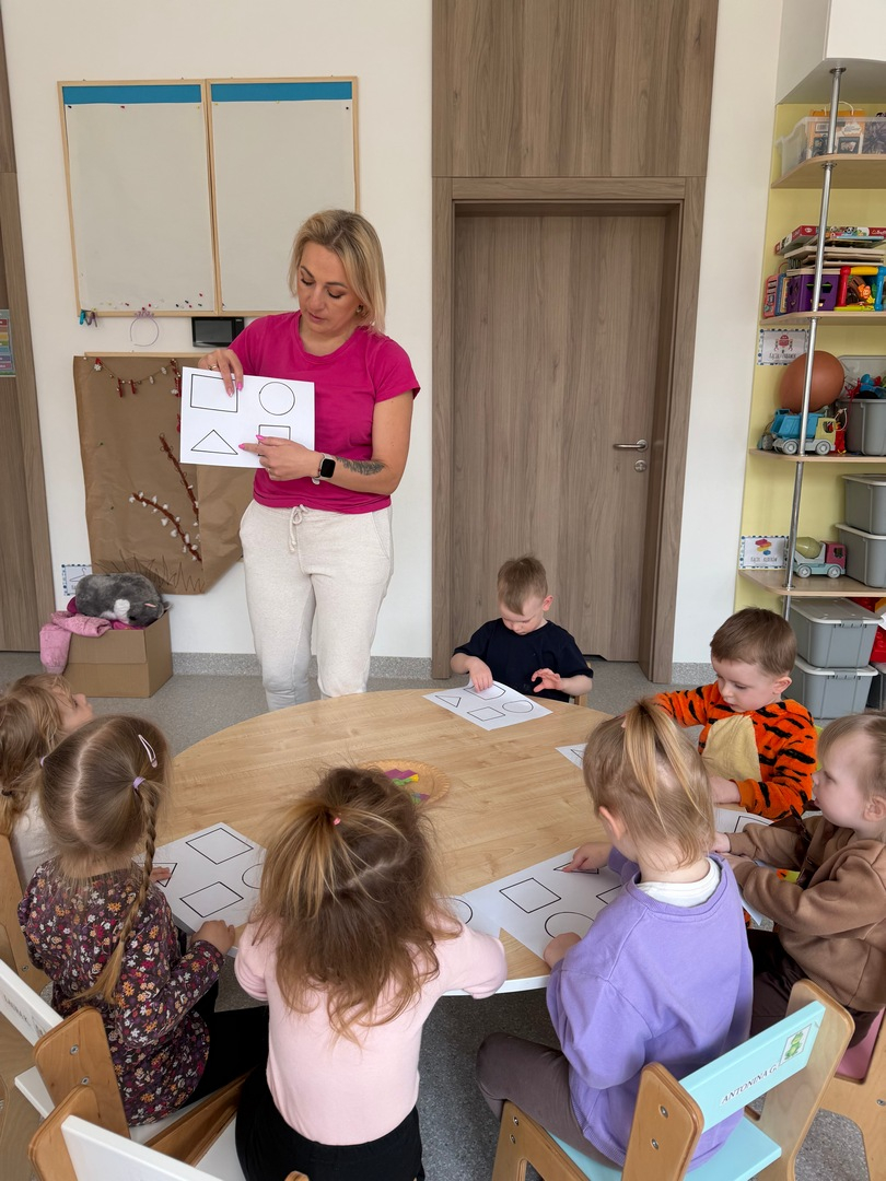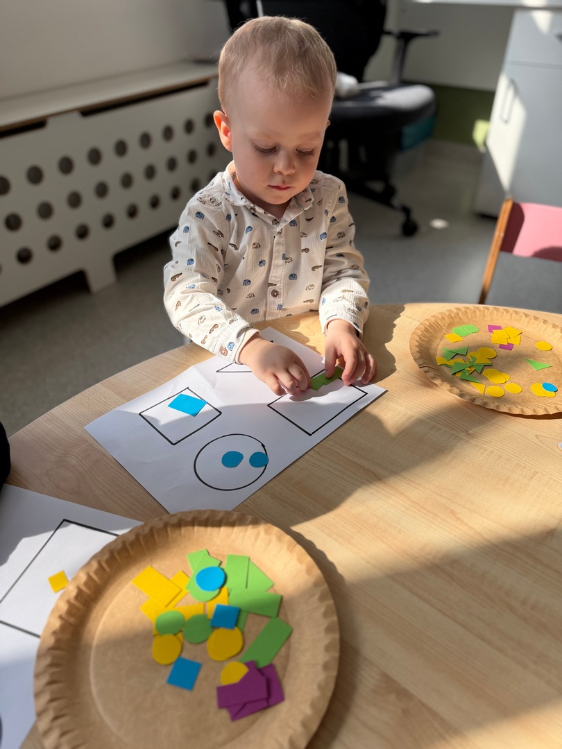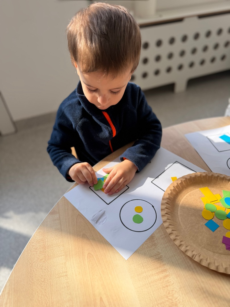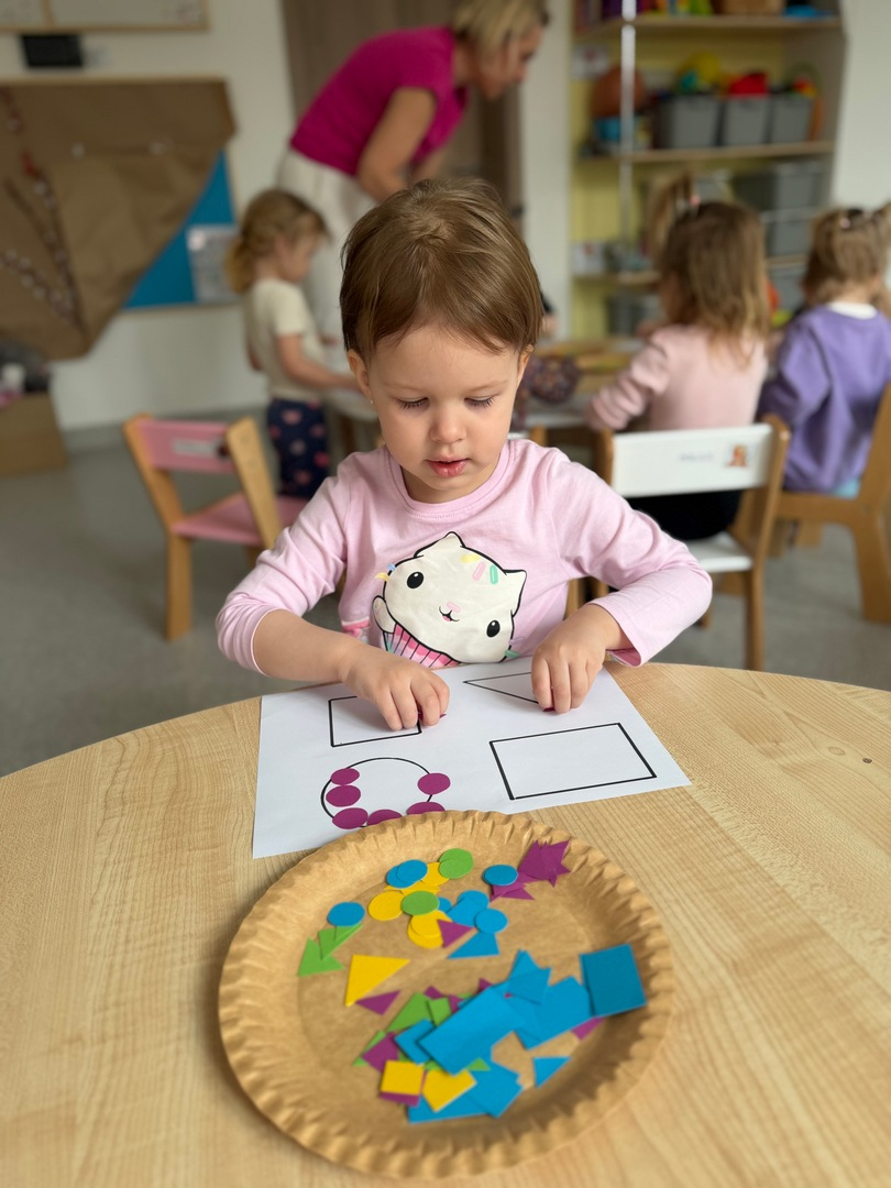 Dzieci z grupy Elfy dziś poznawały kształty oraz próbowały dopasować je do odpowiednich figur geometrycznych. To zadanie wymagało skupienia, uważności i cierpliwości — i z radością możemy powiedzieć, że poradziły sobie z nim naprawdę dzielnie! Każde dziecko pracowało we własnym tempie, a my z dumą obserwowałyśmy , jak rozwijają swoje umiejętności poprzez zabawę. Pojawiało się dużo radości, ciekawości i wzajemnego wspierania się. Zachęcamy, aby w domu również bawić się w rozpoznawanie kształtów — można je odnajdywać w codziennych przedmiotach, co dodatkowo wzmacnia naukę poprzez doświadczenie.
