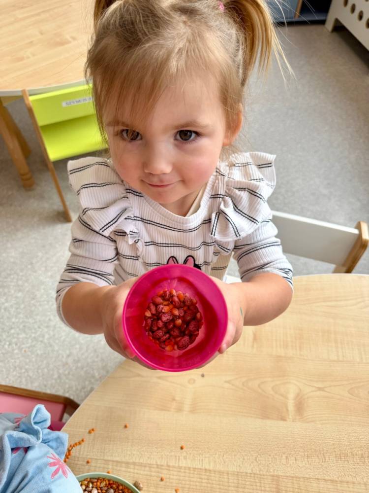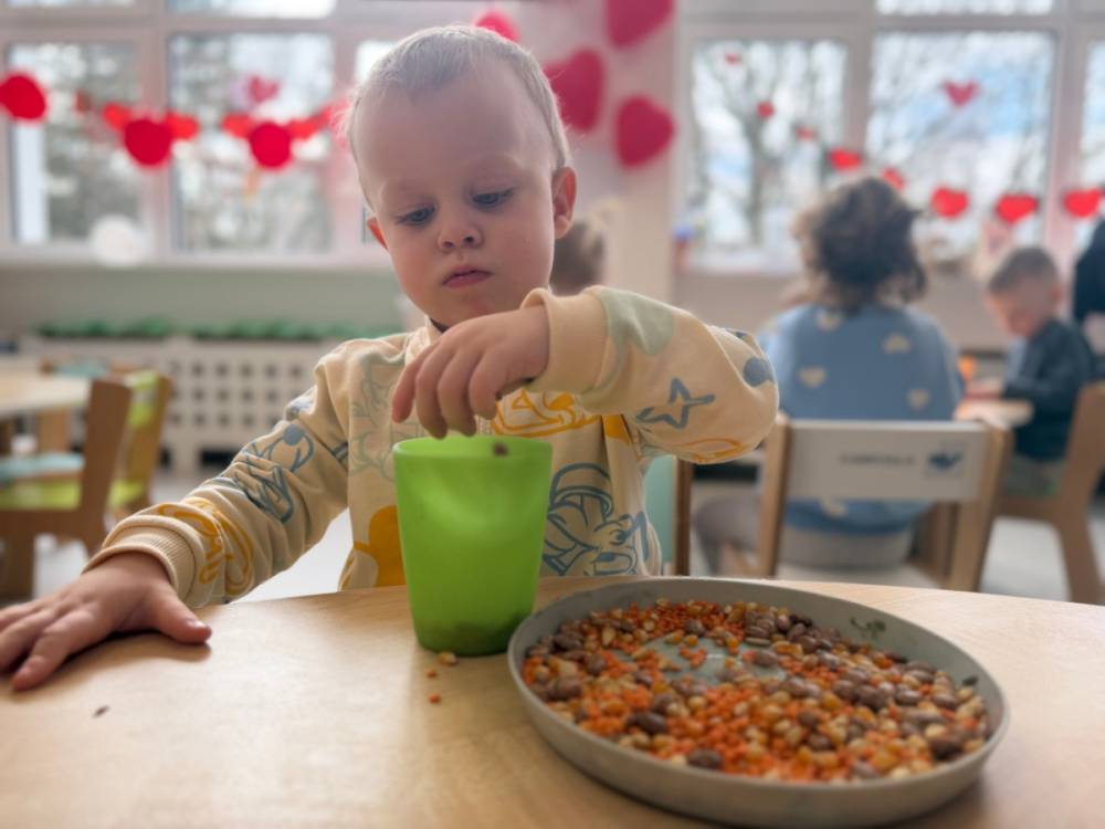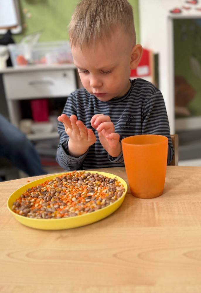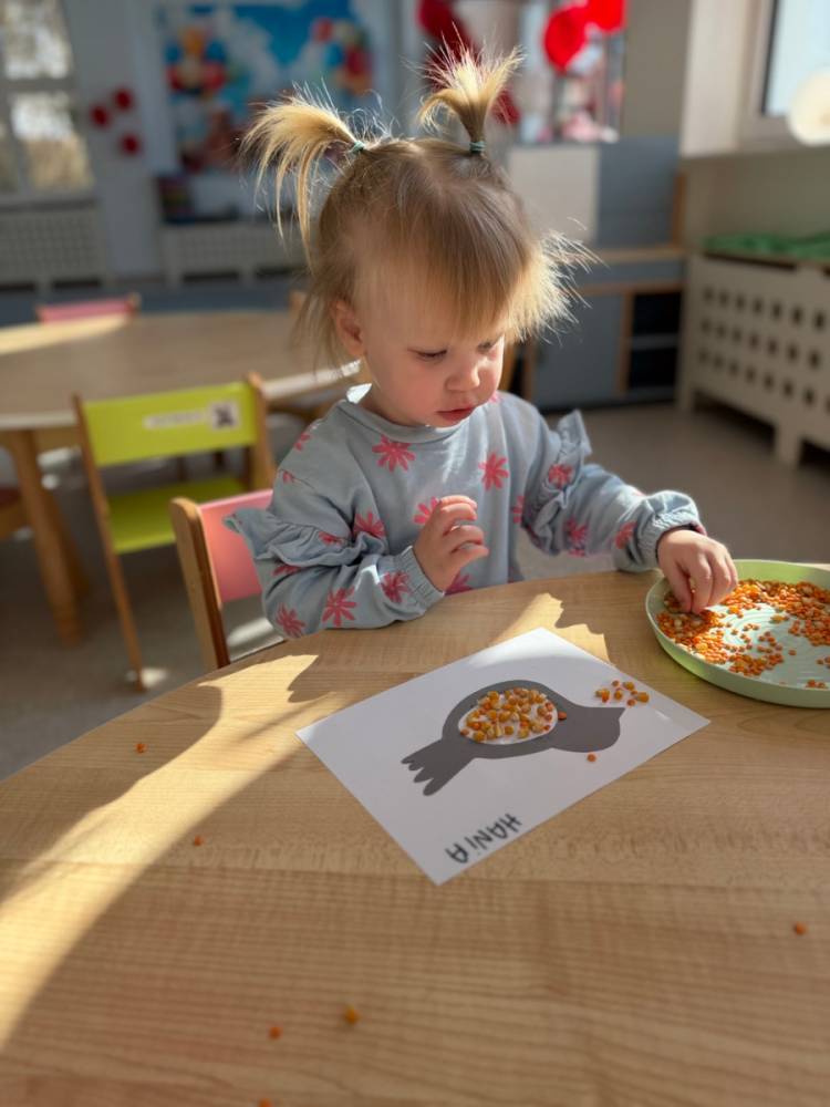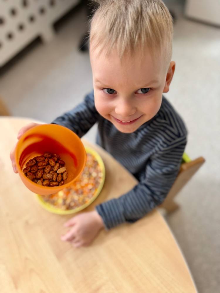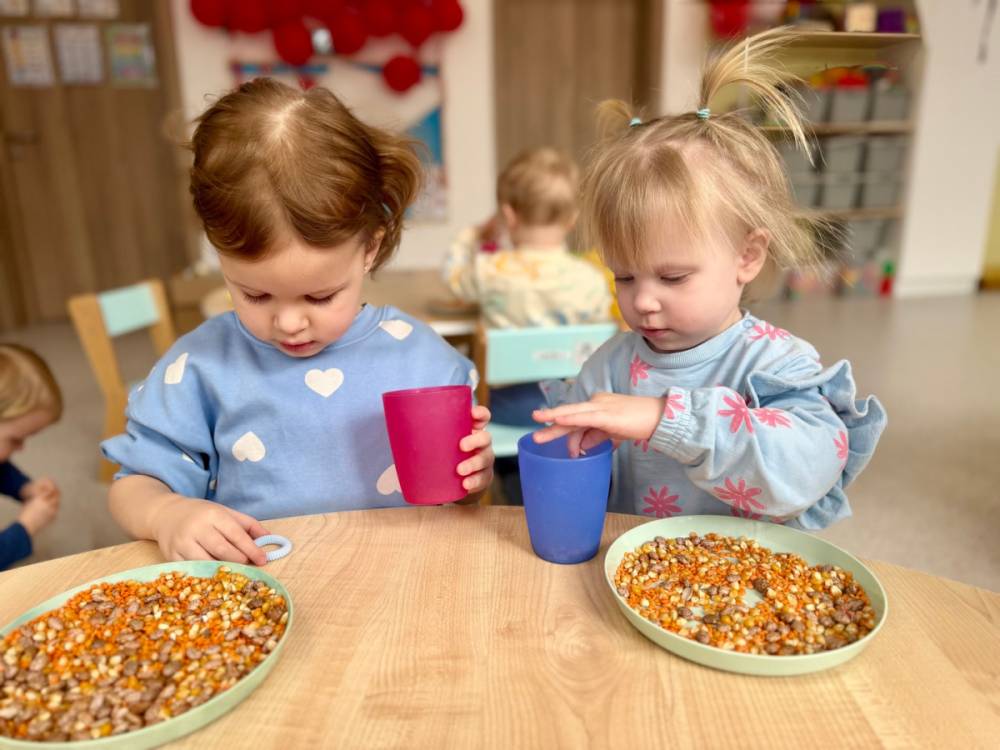 Dzisiejszy dzień w grupie Elfów upłynął pod znakiem skrzydlatych przyjaciół. Dzieci miały do wykonania dwa ważne zadania. Najpierw ćwiczyły motorykę małą oraz chwyt szczypcowy, segregując ziarenka, fasolki, soczewicę i kukurydzę. To było prawdziwe wyzwanie dla małych paluszków, ale Elfy poradziły sobie doskonale!