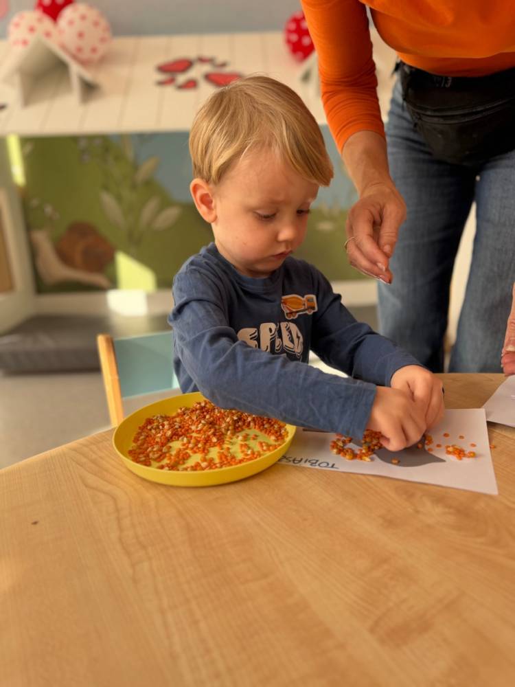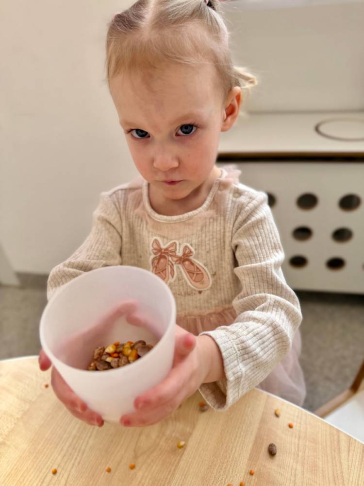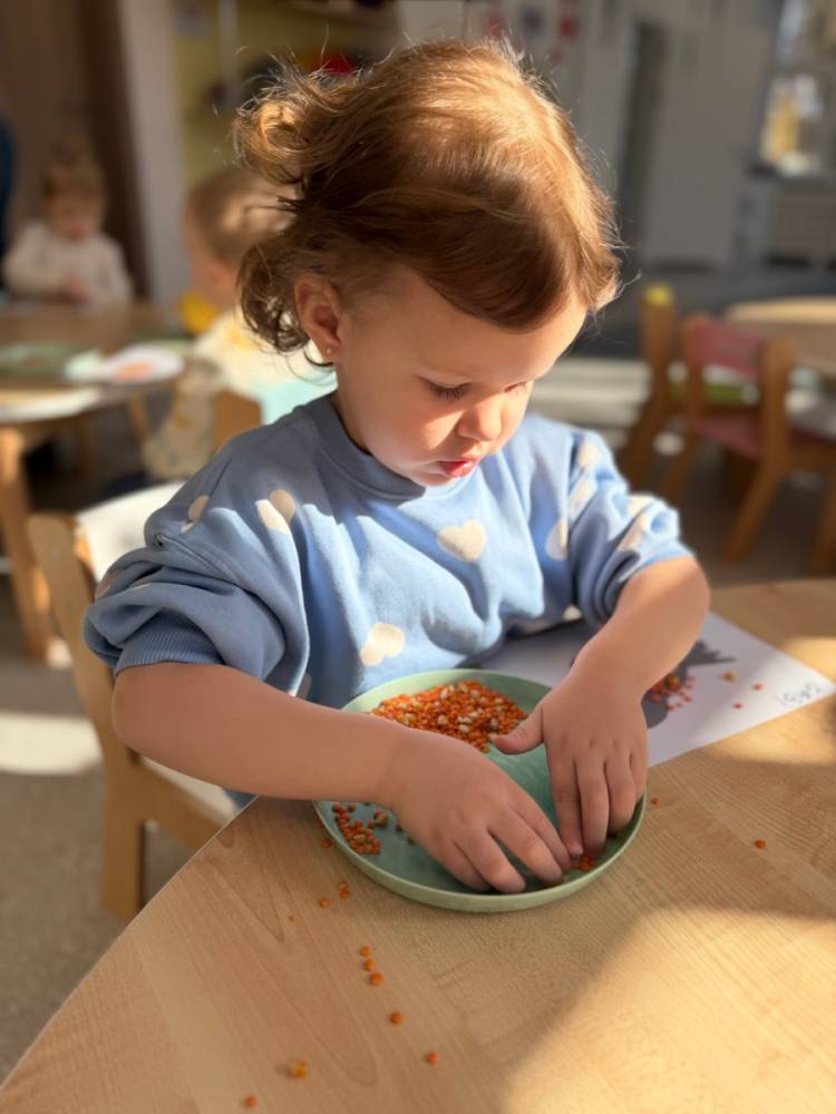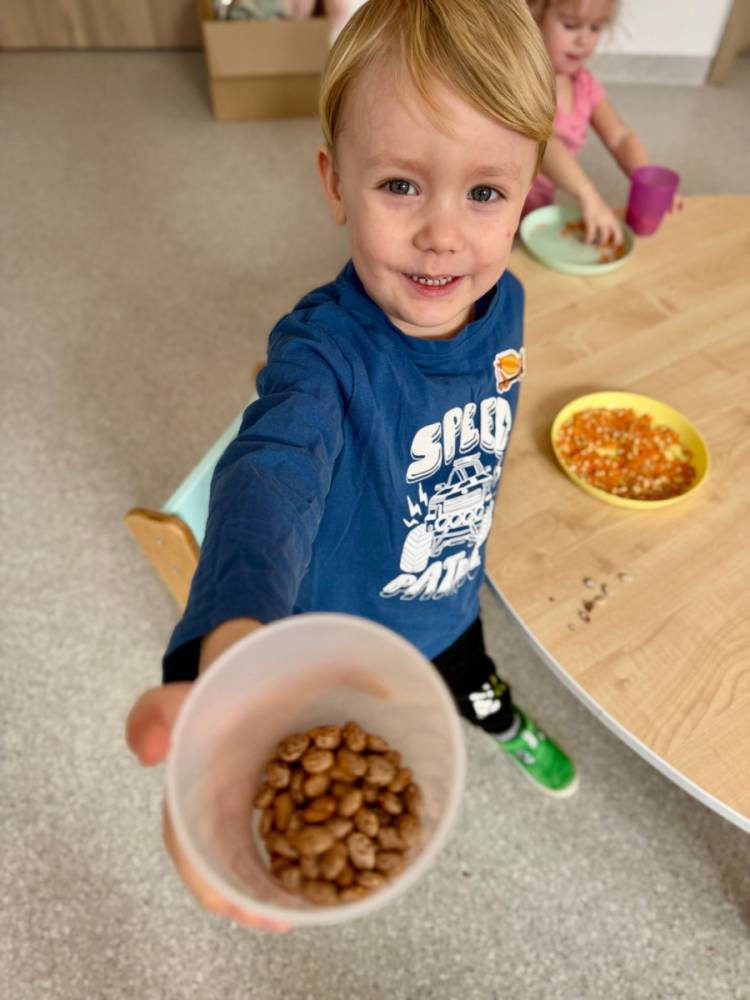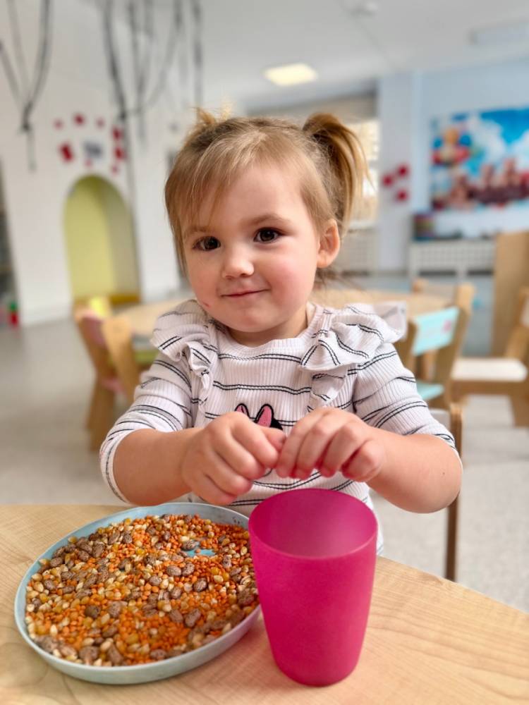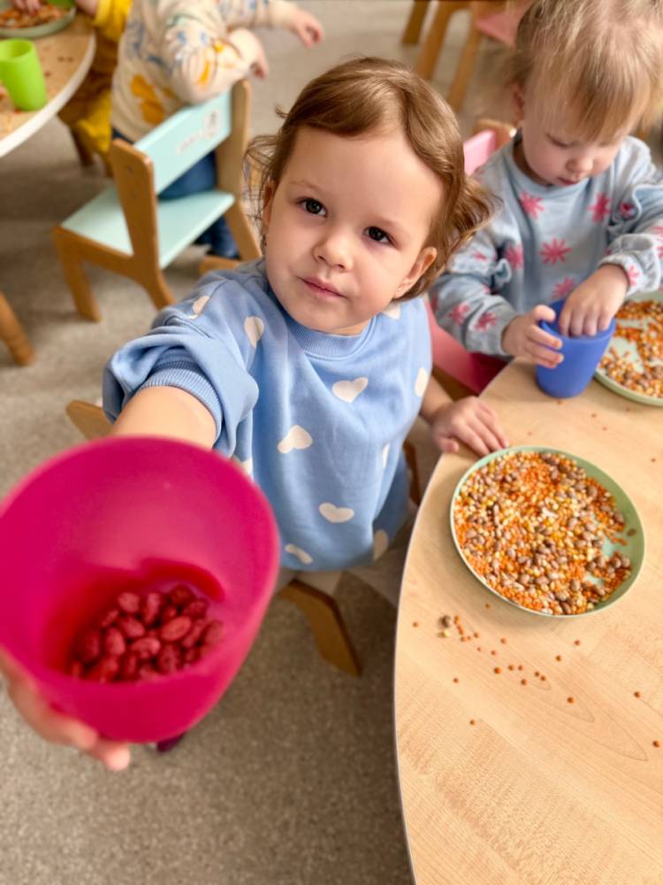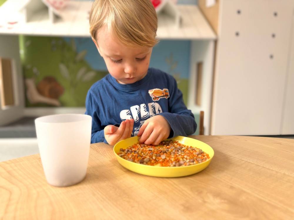 Dzisiejszy dzień w grupie Elfów upłynął pod znakiem skrzydlatych przyjaciół. Dzieci miały do wykonania dwa ważne zadania. Najpierw ćwiczyły motorykę małą oraz chwyt szczypcowy, segregując ziarenka, fasolki, soczewicę i kukurydzę. To było prawdziwe wyzwanie dla małych paluszków, ale Elfy poradziły sobie doskonale!