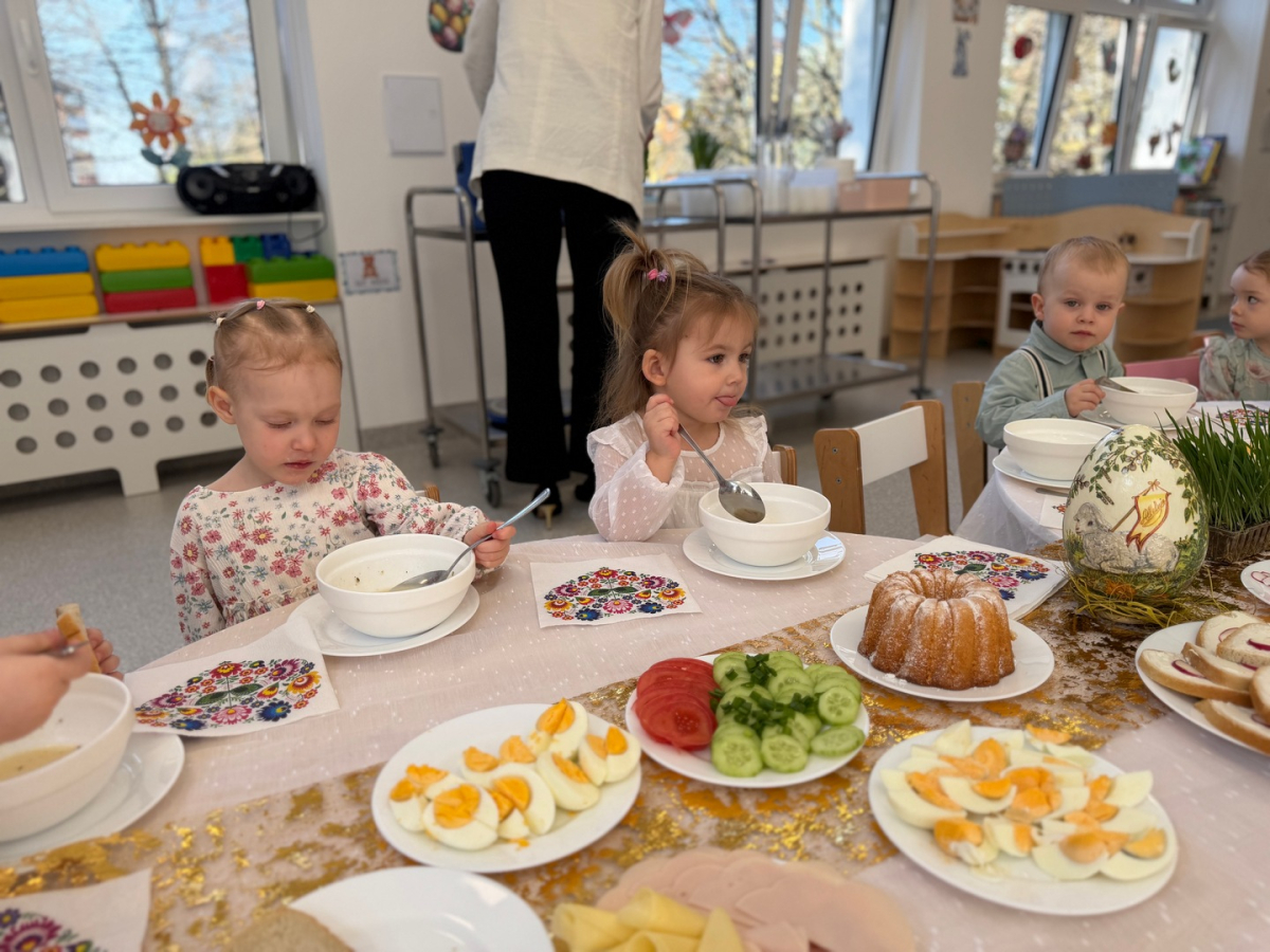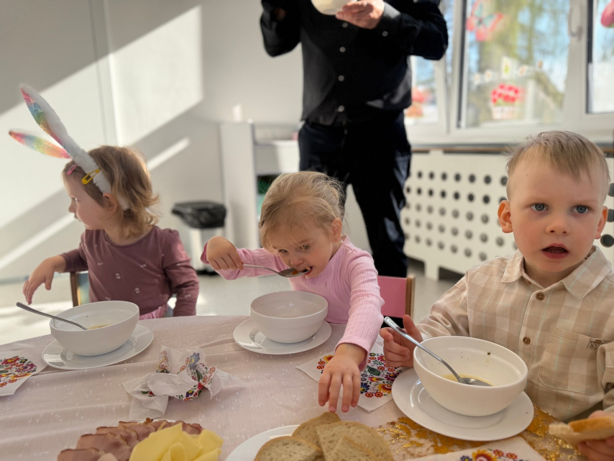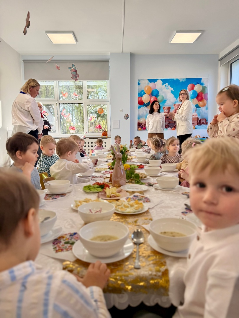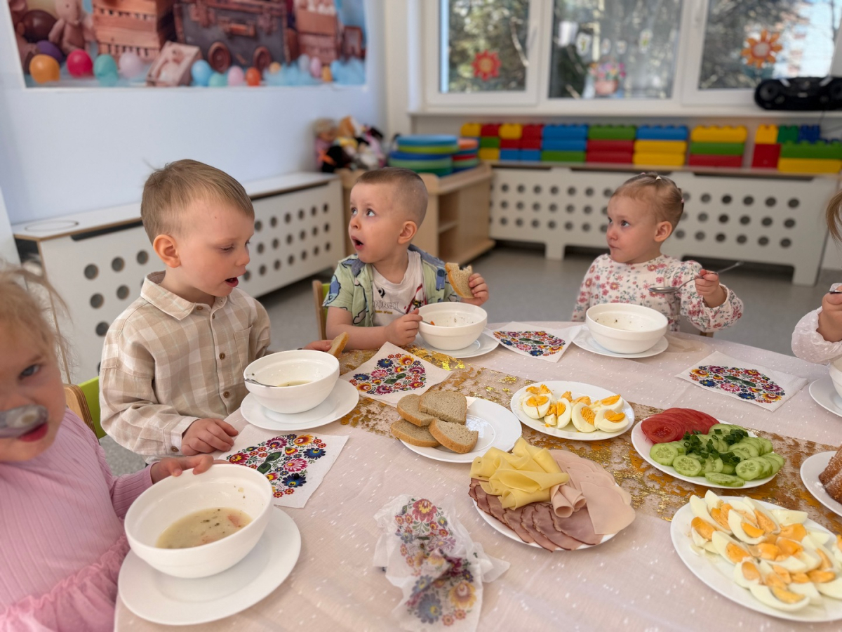 W naszym żłobku odbyło się dziś wyjątkowe, symboliczne śniadanie wielkanocne.Ciocie wraz z dziećmi podzieliły się jajeczkiem, składając sobie nawzajem ciepłe i serdeczne życzenia. Po tej pięknej chwili wszyscy zasiedli do wspólnego stołu, gdzie czekał na nas pyszny, tradycyjny żurek. To wyjątkowe spotkanie przyniosło wszystkim wieeele radości, uśmiechu i poczucia wspólnoty. Dziękujemy za ten cudowny, świąteczny czas!