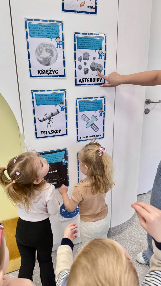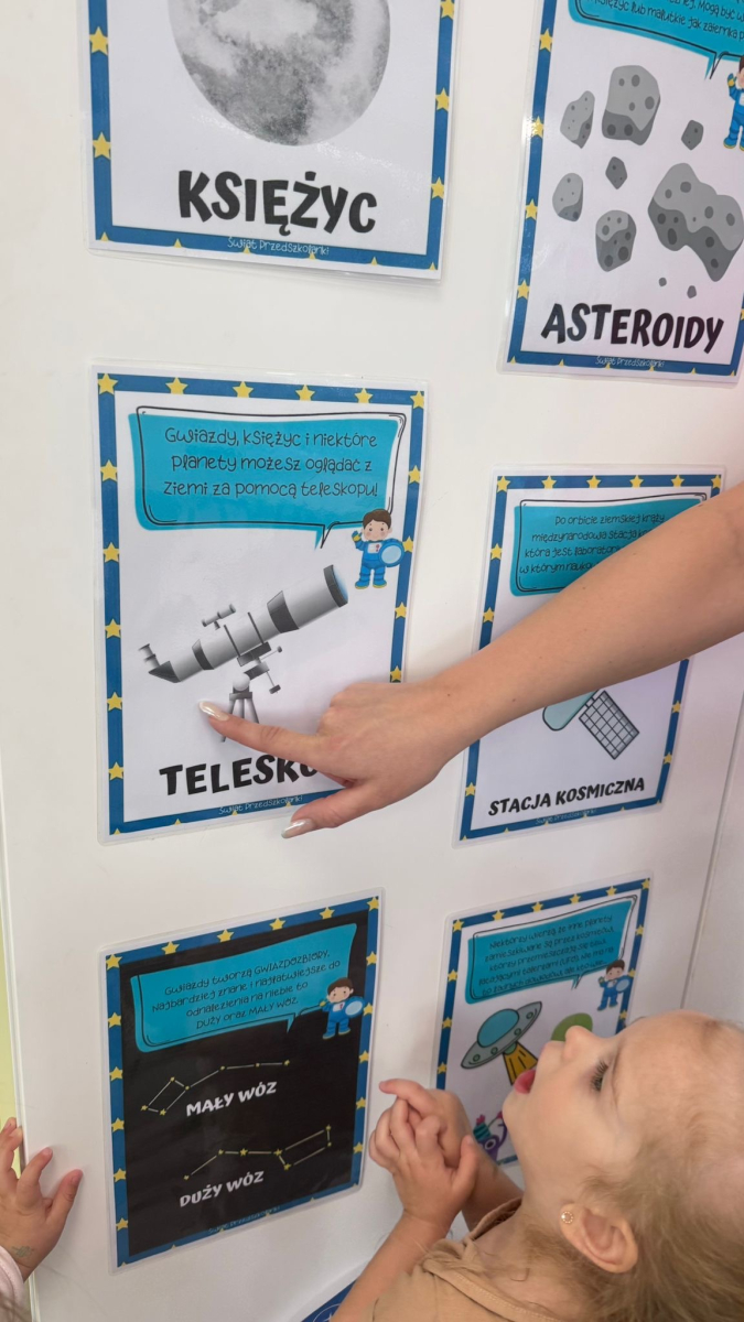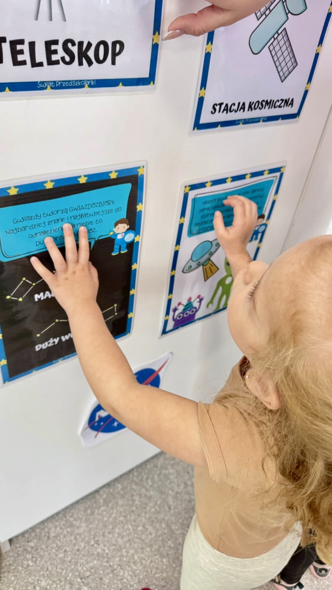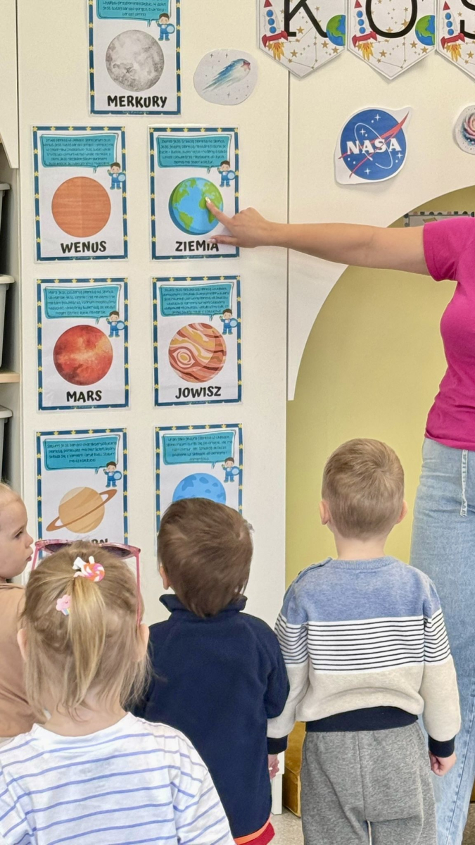 W tym tygodniu w grupie Elfy krążymy wokół tematu kosmosu – niczym planety wokół Słońca! W związku z Międzynarodowym Dniem Lotnictwa i Kosmonautyki, obchodzonym 12 kwietnia na pamiątkę pierwszego lotu człowieka w kosmos. Nasze dzieci wyruszyły w niezwykłą podróż, podczas której dowiedziały się, czym jest kosmos oraz jakie planety wchodzą w skład Układu Słonecznego. To był dzień pełen ciekawostek, odkryć i dziecięcej wyobraźni, która – jak się okazało – nie zna granic! A to dopiero początek…już jutro czeka na naszych małych odkrywców kolejna kosmiczna przygoda!