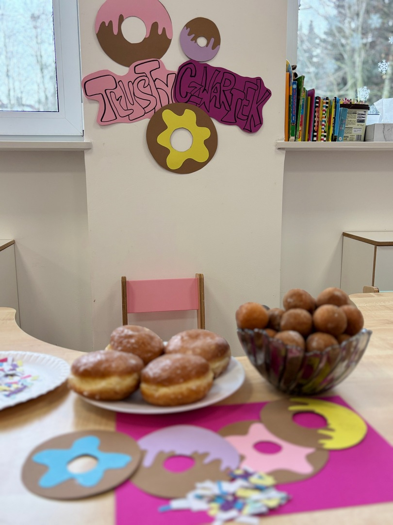 Na zakończenie, zgodnie z tradycją, wszyscy ze smakiem zajadali się prawdziwymi pączkami. Było radośnie, kolorowo i bardzo słodko – czyli dokładnie tak, jak powinien wyglądać Tłusty Czwartek!