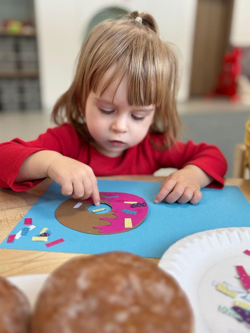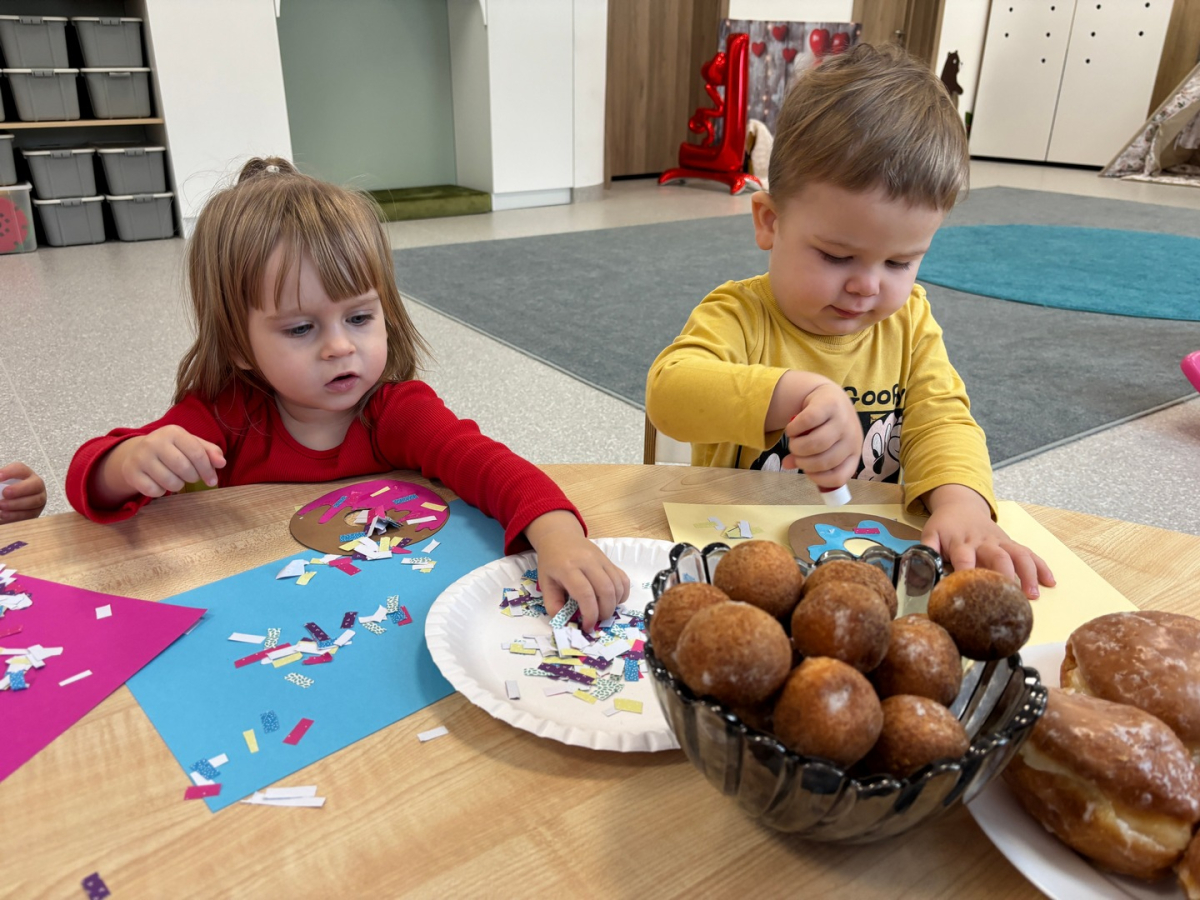 Dziś było u nas wyjątkowo kolorowo, twórczo i…bardzo słodko! Dzieci z ogromnym zaangażowaniem wykonały piękne prace plastyczne – ozdabiały papierowe pączki barwnymi posypkami, ćwicząc przy tym małą motorykę, precyzję ruchów, koncentrację oraz rozwijając swoją wyobraźnię i kreatywność. Takie aktywności wspierają również cierpliwość i dają dzieciom dużo radości z własnoręcznie wykonanej pracy.