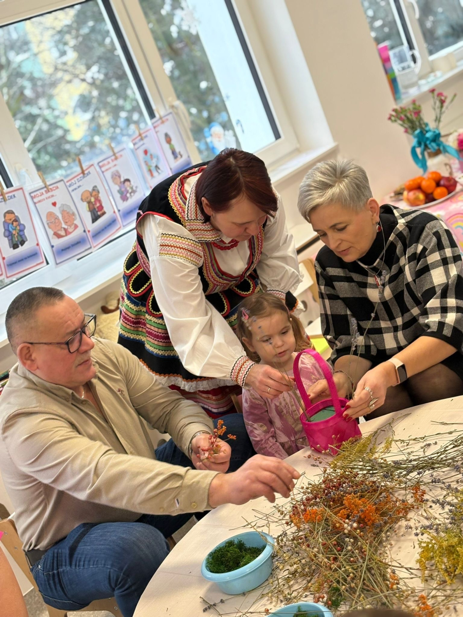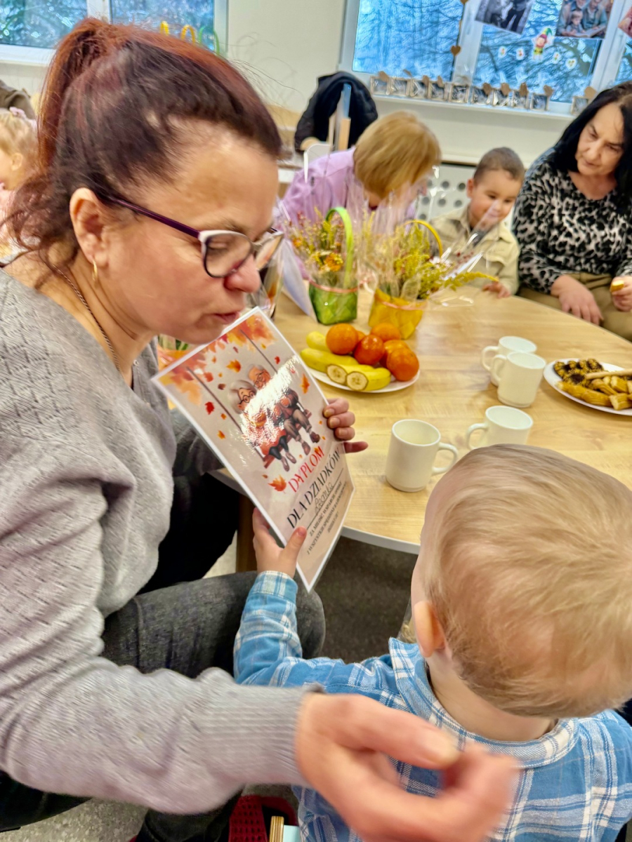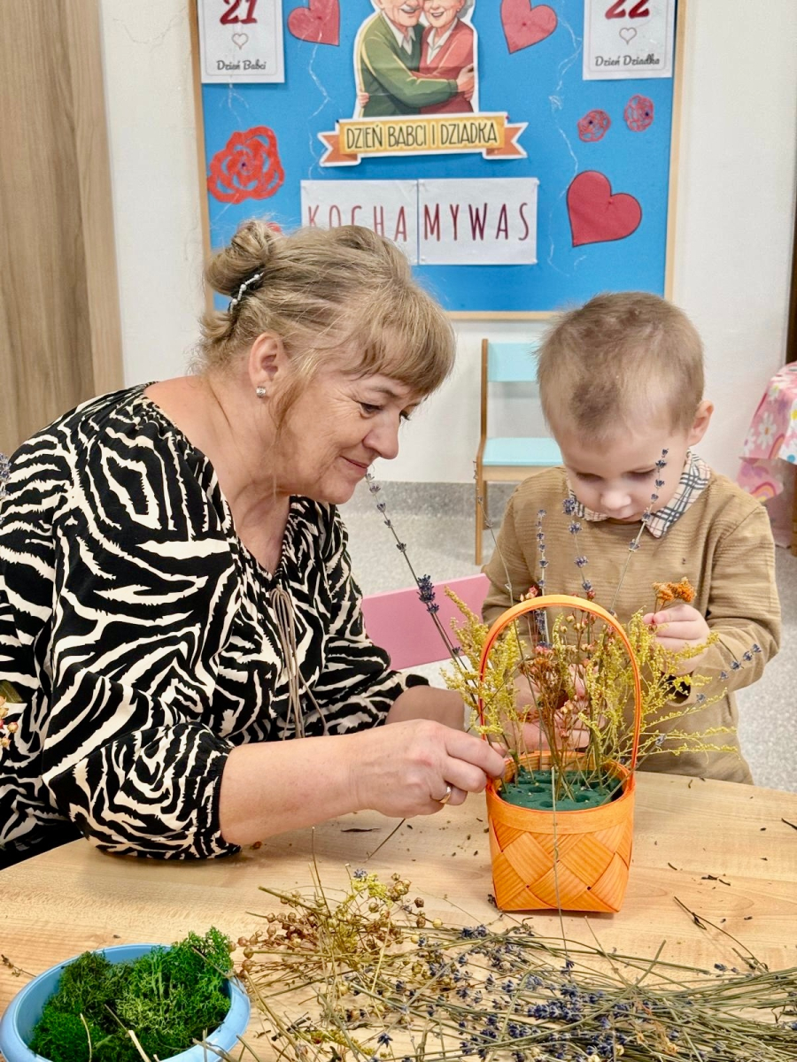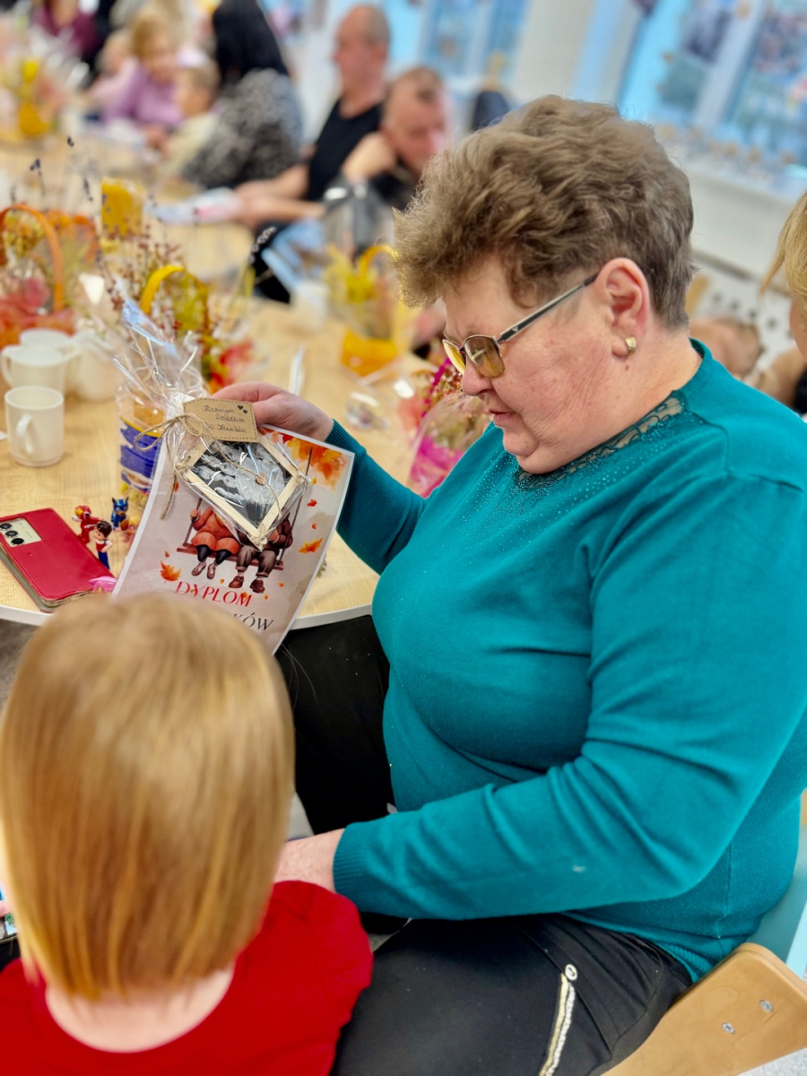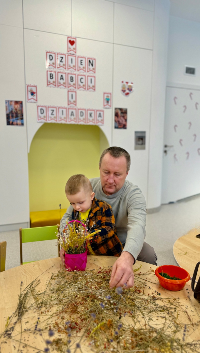 Są takie chwile, które zostają w sercu na długo…Warsztaty z okazji Dnia Babci i Dziadka były właśnie takim wyjątkowym wydarzeniem - pełnym wzruszeń, uśmiechów i prawdziwej bliskości. Dzieci z ogromnym zaangażowaniem i radością przygotowały niespodzianki dla swoich ukochanych Babć i Dziadków. Wspólne zabawy, twórcze działania oraz drobne gesty płynące prosto z dziecięcych serduszek sprawiły, że w powietrzu unosiła się atmosfera miłości i ciepła. Nie zabrakło łez wzruszenia, szczerych uśmiechów oraz dumy widocznej w oczach naszych gości. To był piękny czas, który pokazał, jak ważna jest więź między pokoleniami i jak wiele radości daje bycie razem.
