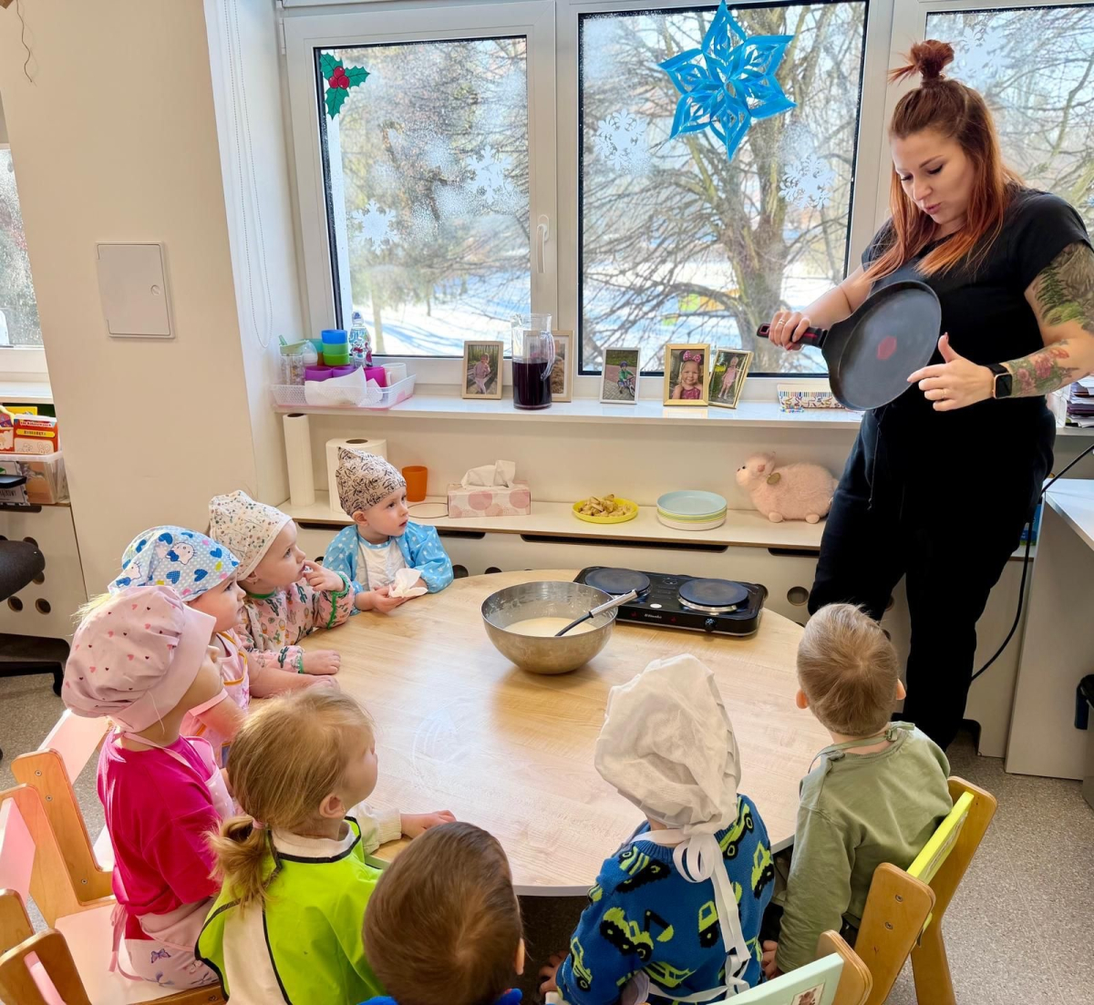 W naszym Żłobku każdego dnia jest radośnie, kreatywnie i bardzo twórczo. Dzieci uczestniczą w zajęciach sensorycznych, plastycznych i kulinarnych, które rozwijają zmysły, wyobraźnię oraz samodzielność. Towarzyszą nam zapachy, smaki, kolory i mnóstwo dziecięcych uśmiechów. W tym tygodniu królował Naleśnik i Dzień Naleśnika, który wypełnił nasz Żłobek aromatem i radością z kulinarnych aktywności. Wspólnie świętujemy także urodziny oraz ważne dni w roku, tworząc ciepłą, bezpieczną i pełną radości przestrzeń dla wszystkich dzieci:)Dzień Naleśnika.