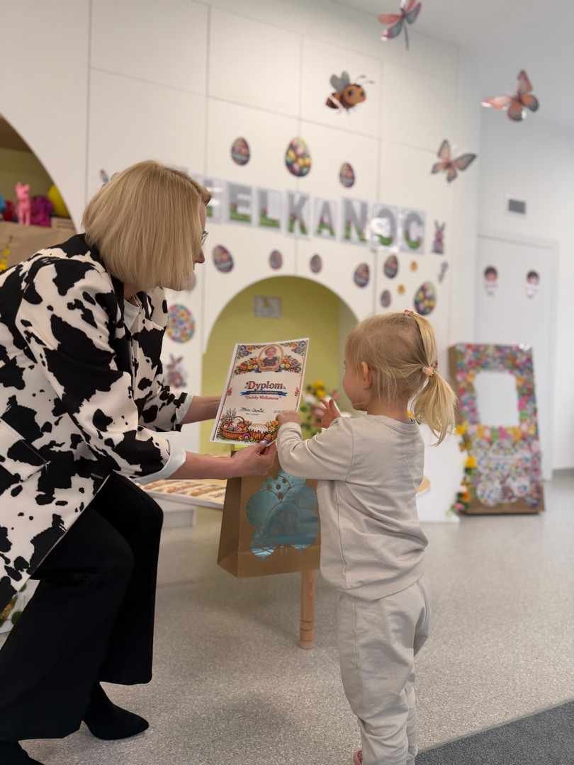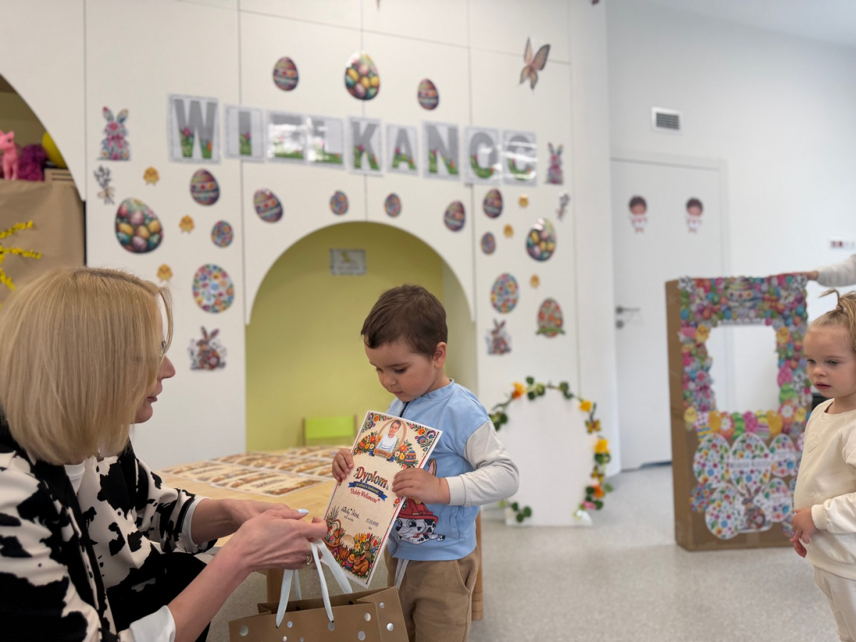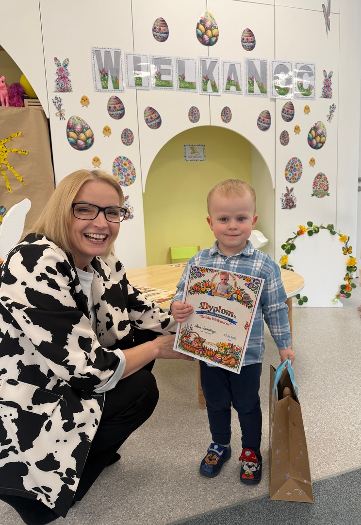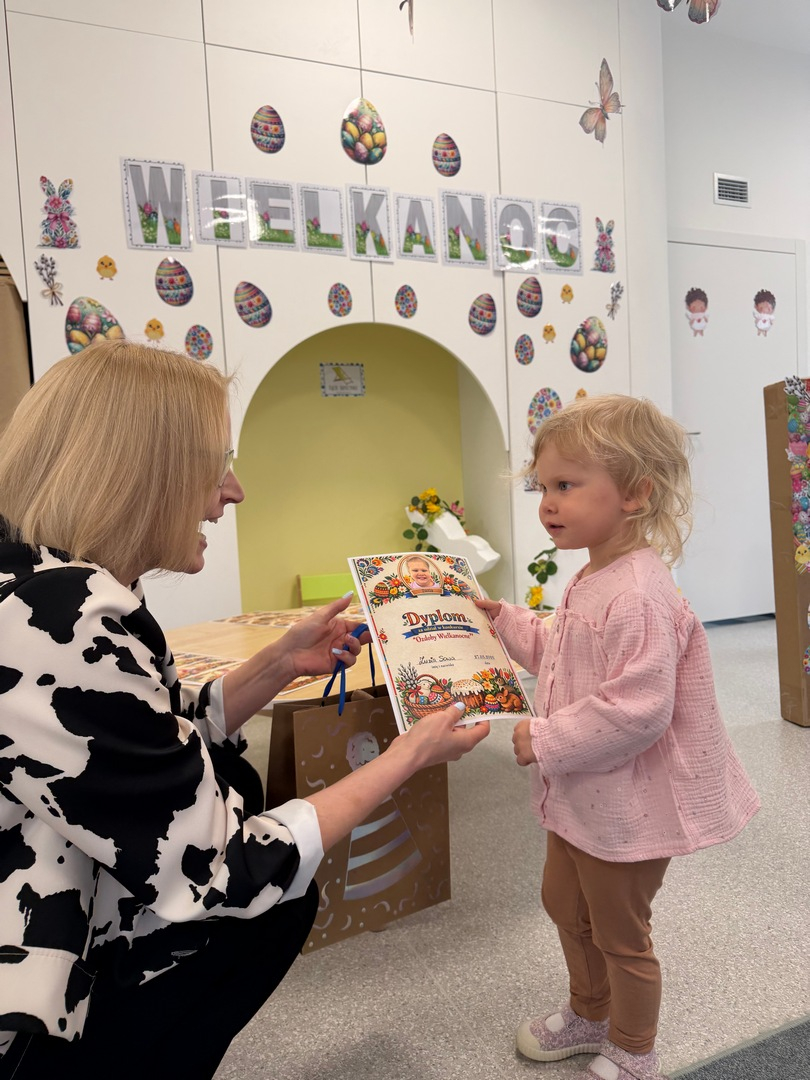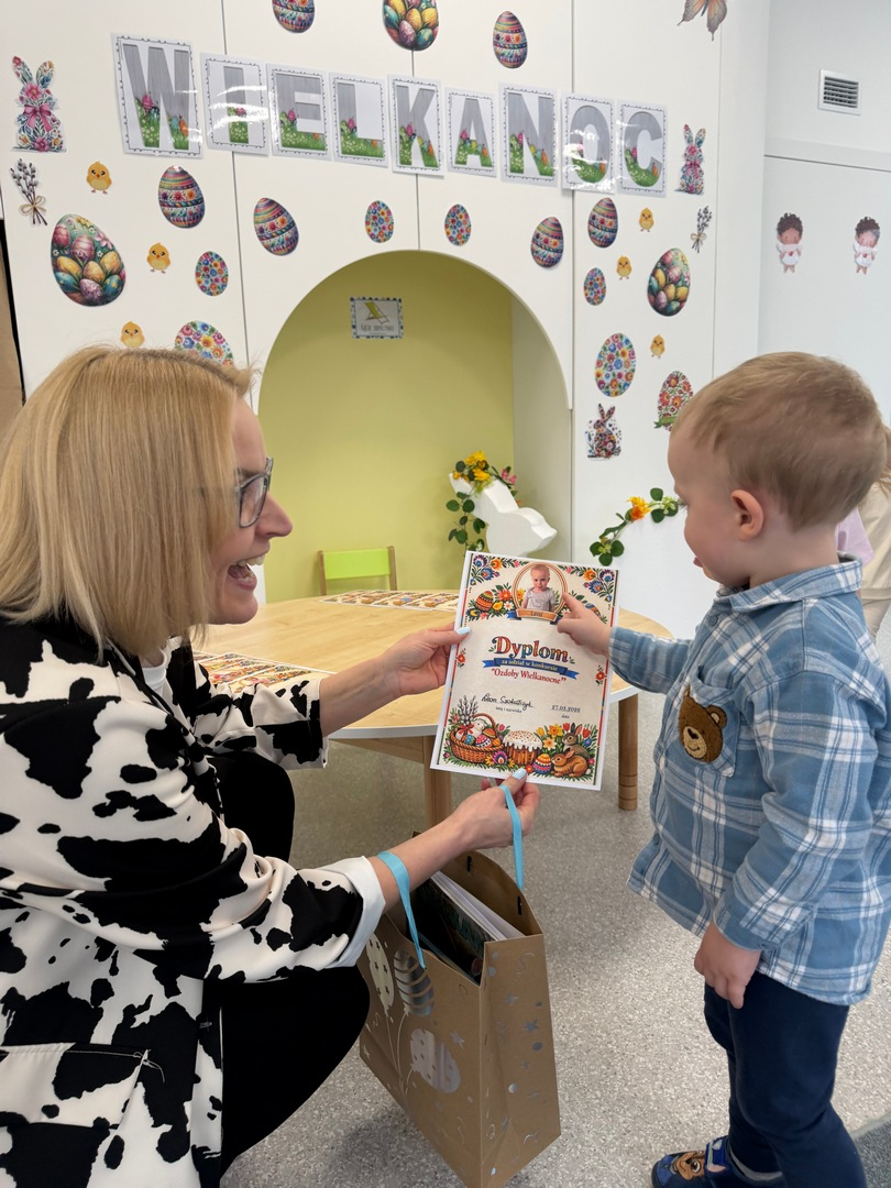 Dziś w naszym żłobku odbyło się uroczyste rozstrzygnięcie konkursu wielkanocnego. Komisja konkursowa stanęła przed niezwykle trudnym zadaniem – każda praca zachwycała pomysłowością, starannością i ogromnym sercem włożonym w jej wykonanie. Dlatego podjęto wyjątkową decyzję: wszyscy uczestnicy zostali zwycięzcami!