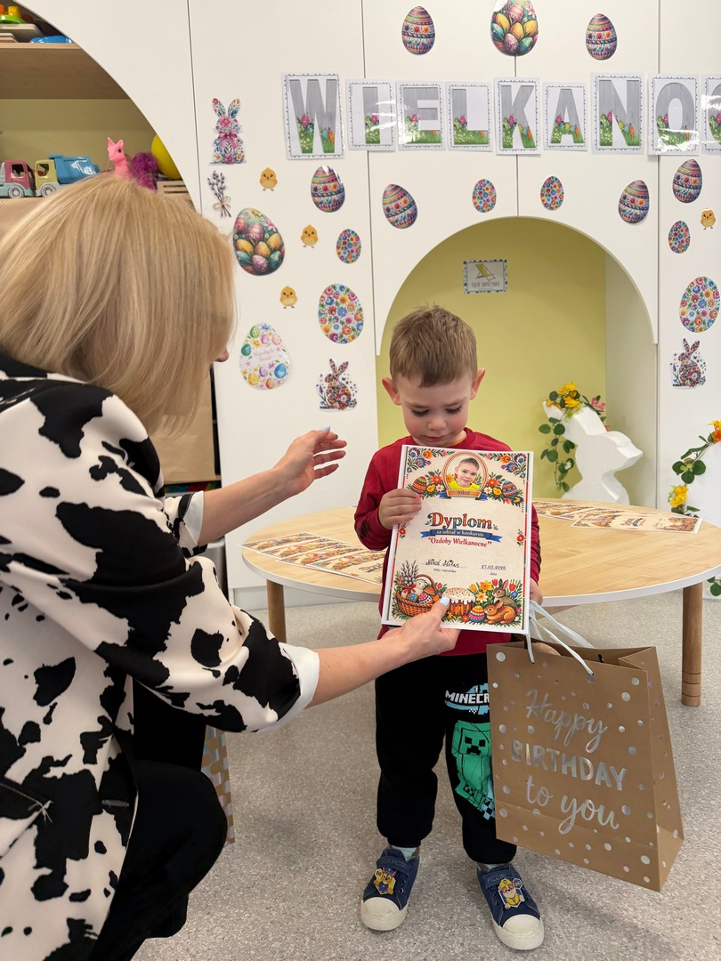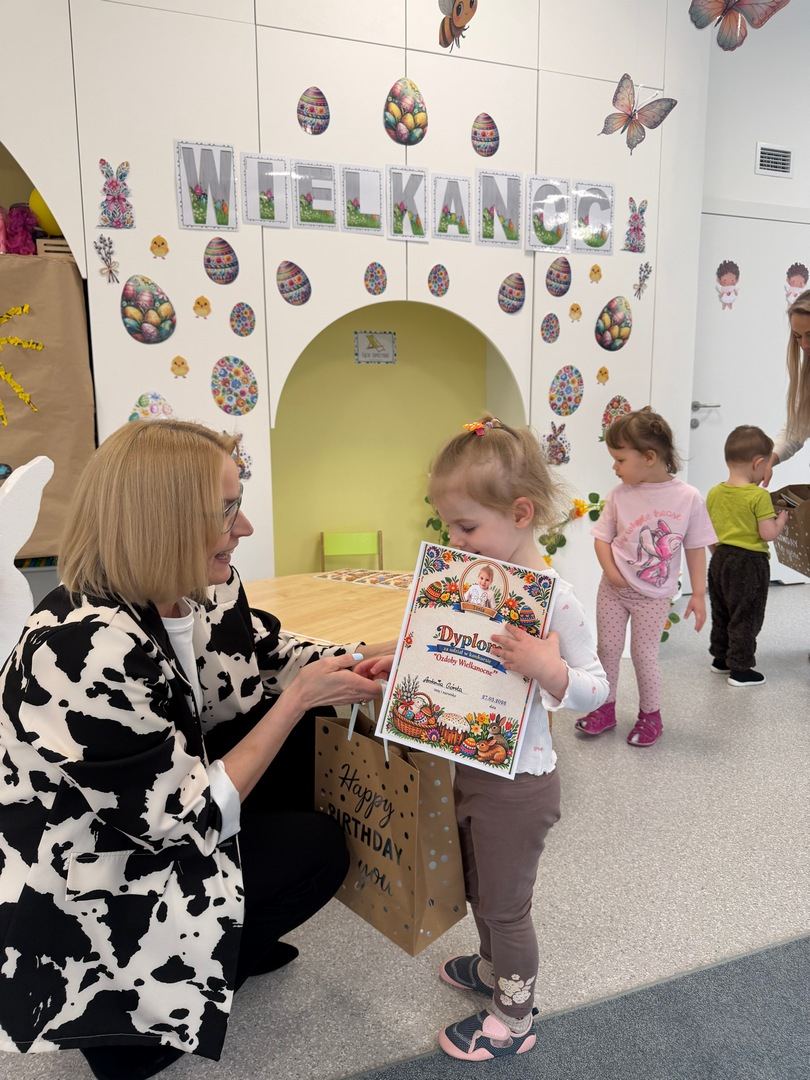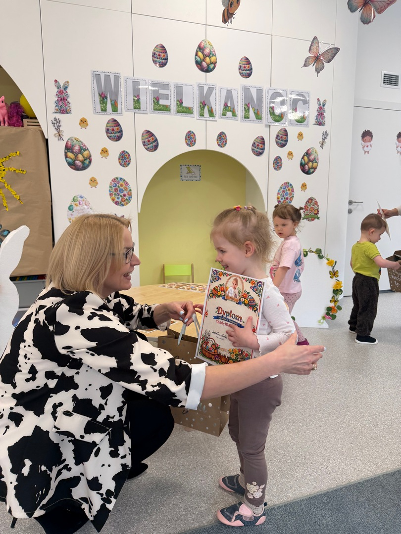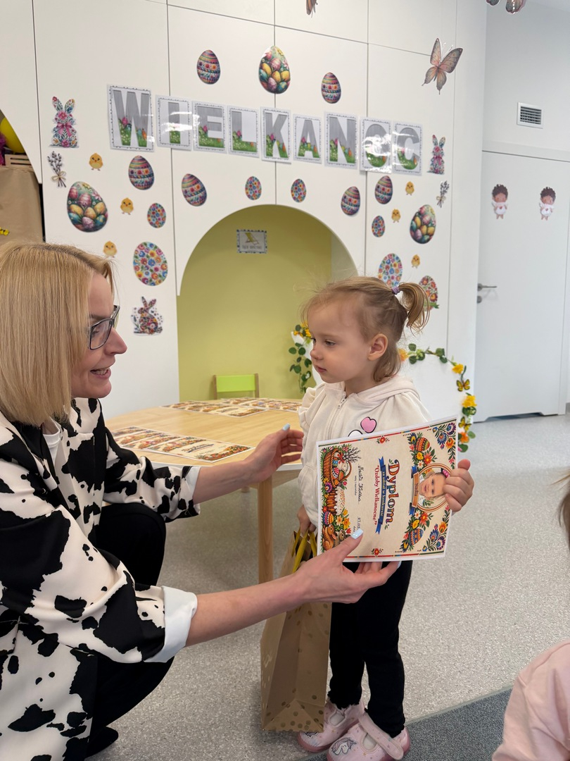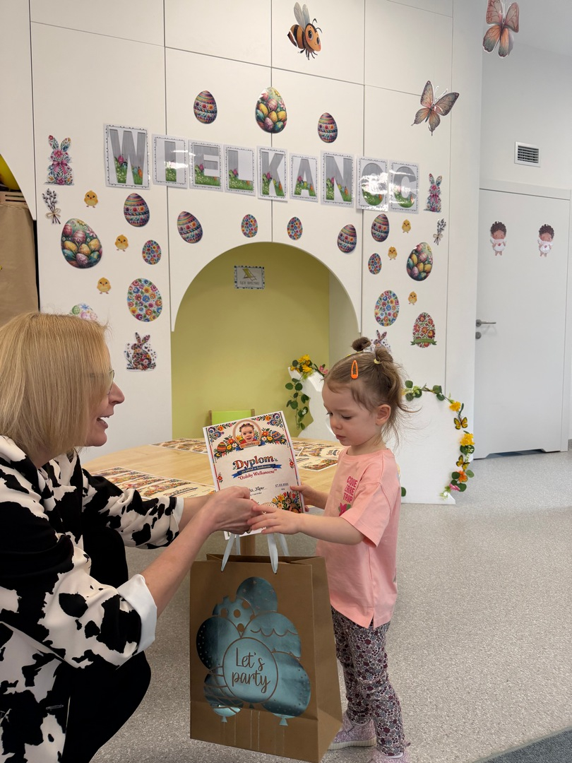 Dziś w naszym żłobku odbyło się uroczyste rozstrzygnięcie konkursu wielkanocnego. Komisja konkursowa stanęła przed niezwykle trudnym zadaniem – każda praca zachwycała pomysłowością, starannością i ogromnym sercem włożonym w jej wykonanie. Dlatego podjęto wyjątkową decyzję: wszyscy uczestnicy zostali zwycięzcami!