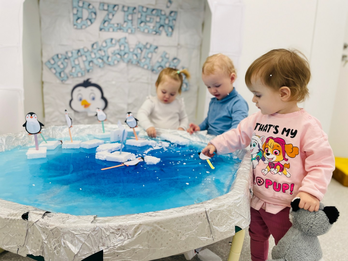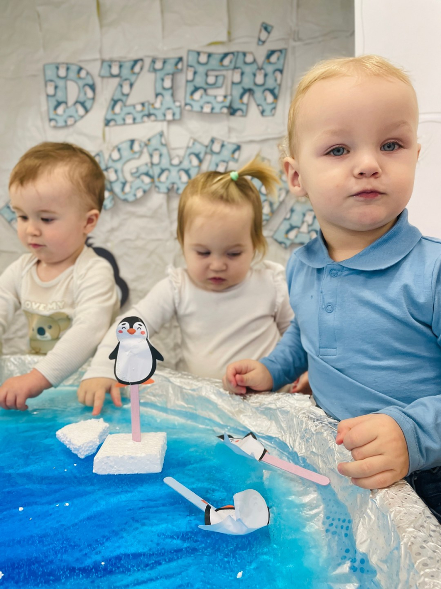 Dziś nasze Pszczółki przeniosły się na biegun południowy! Były pingwiny, iglo ,kawałki lodu i… prawdziwe lodowisko. Nasze małe Pszczółki z ogromnym zaciekawieniem odkrywały zimowy świat, a nasze lodowisko sensoryczne podbiło serca wszystkich dzieci. Brawo dla małych odkrywców!
