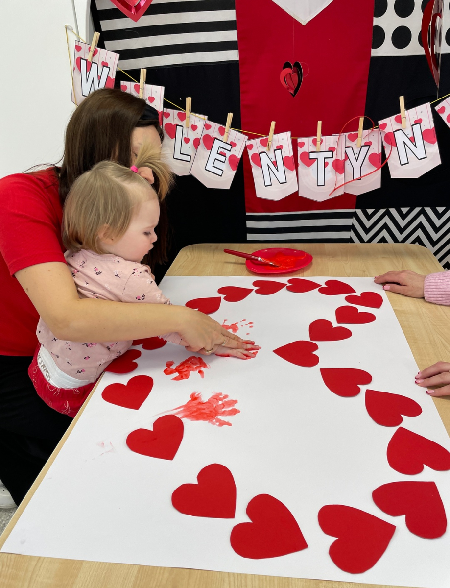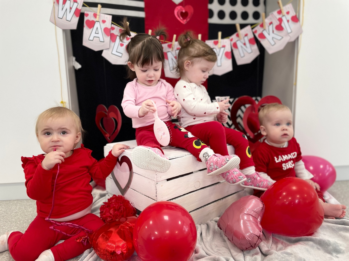 Dziś w naszym żłobku świętowaliśmy Walentynki. Dzieci wykonały wspólną pracę plastyczną „Serce Przyjaźni” na dużym, papierowym sercu odbijały swoje dłonie pomalowane na czerwono. Powstała piękna, kolorowa pamiątka, która symbolizuje naszą grupową przyjaźń. Na zakończenie odbyła się krótka sesja zdjęciowa, podczas której dzieci pozowały z sercem.