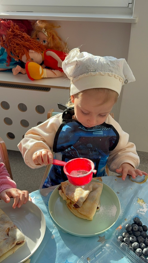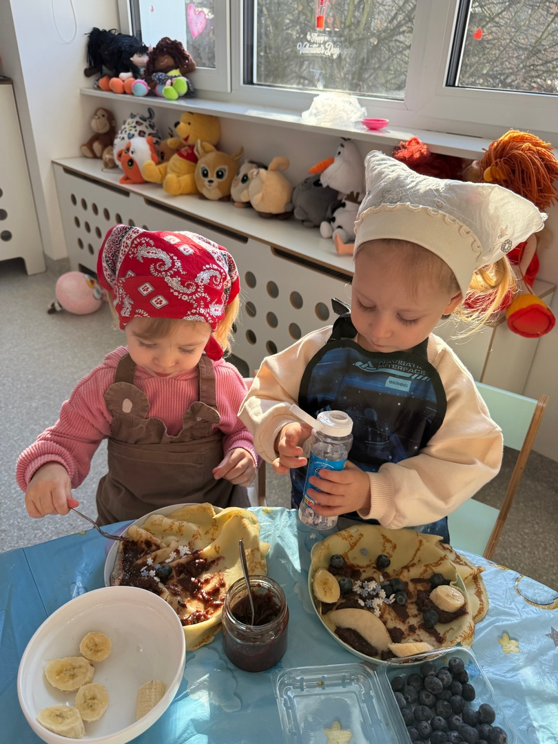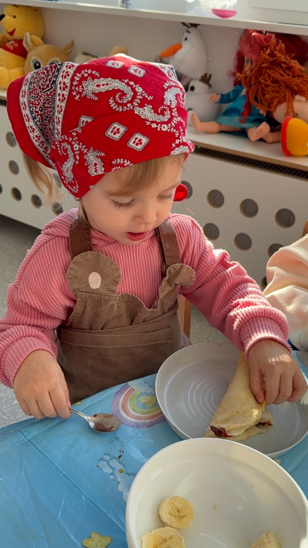 W grupie Sówki odbyły się zajęcia kulinarne z okazji Dnia Naleśnika. Maluszki samodzielnie dekorowały naleśniki, poznając produkty i rozwijając swoje umiejętności. Było pachnąco, smacznie i kolorowo :). Zajęcia sprawiły dzieciom wiele radości i dały poczucie samodzielności :).