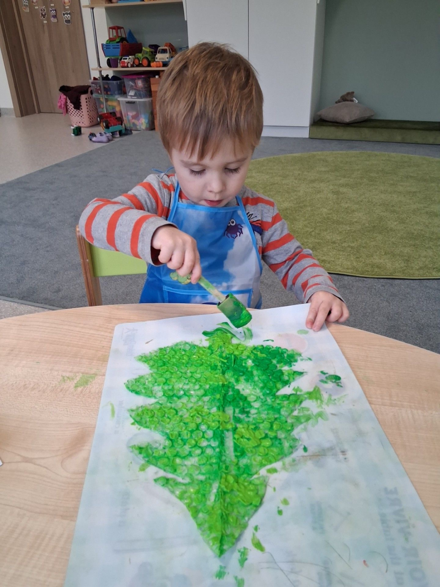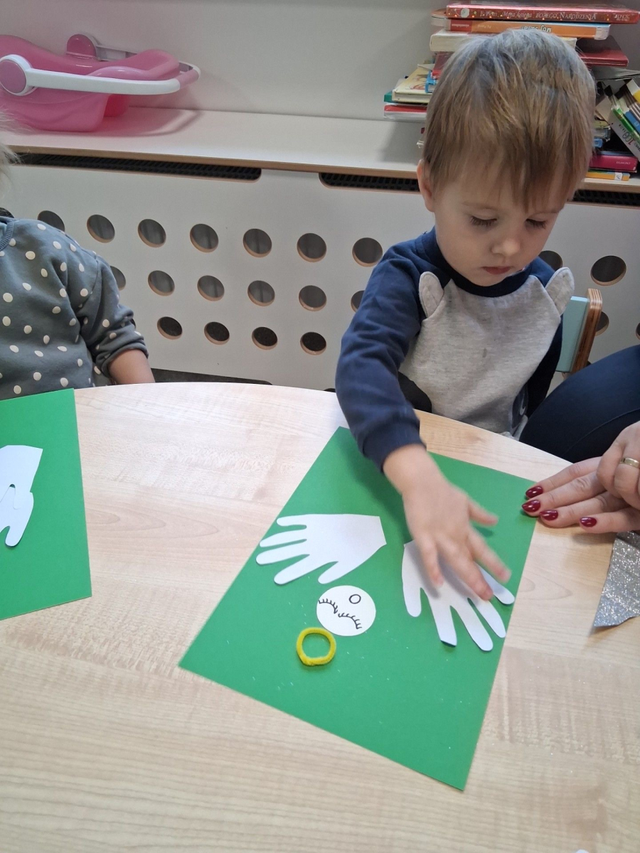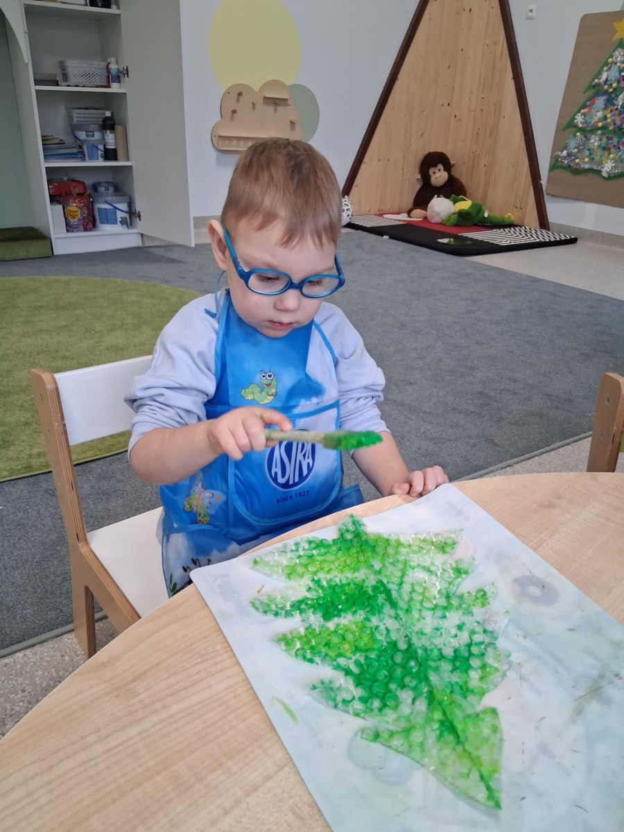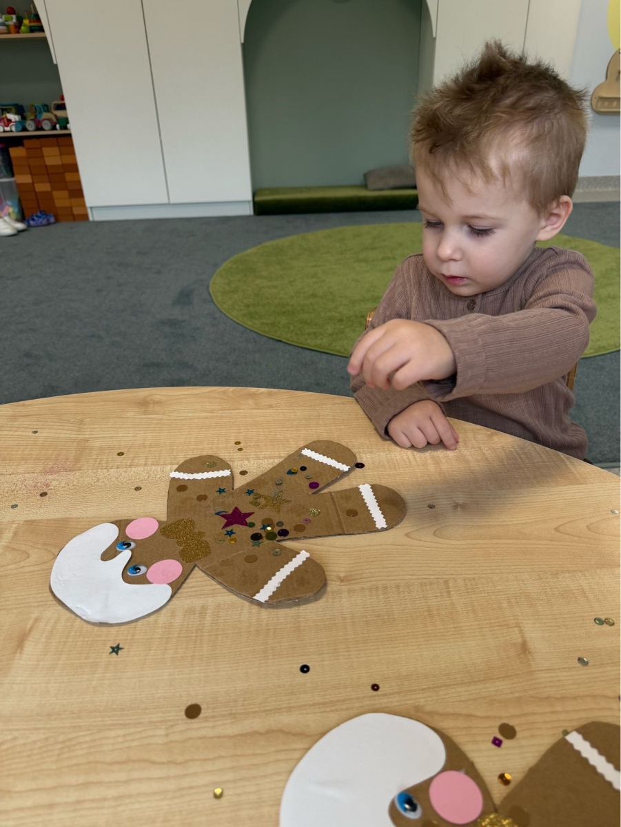 W grupie „Sówki” powstają kreatywne, świąteczne prace plastyczne – anioły, choinki i piernikowe ozdoby. Dzieci z zaangażowaniem tworzą małe dzieła sztuki, wprowadzając do sali prawdziwie magiczny, świąteczny nastrój.